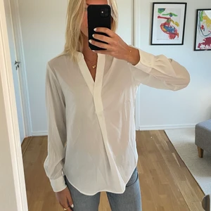 Vit skjortblus från HM, använd endast fåtal gånger och har ett väldigt bra skick. Storleken är 34 men skulle säga att den är hyfsat stor och mer som en 36/38. Skön och luftig att bära