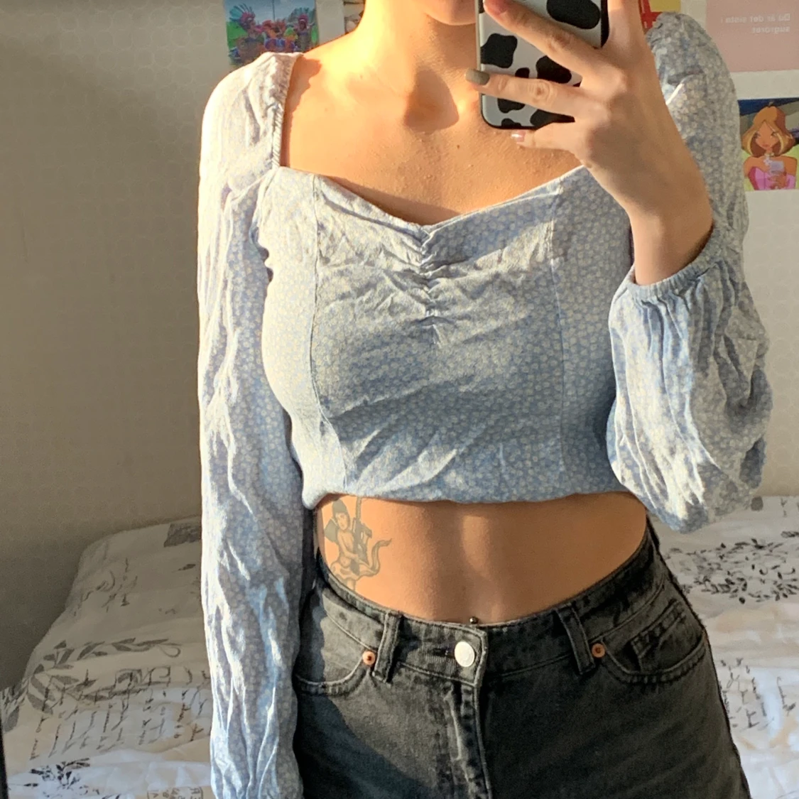 Uppvikt på bilden. Så himmla fin topp från hm storlek 38 men sitter fint på mig som har 34/36. Frak tillkommer på 33kr 🍃