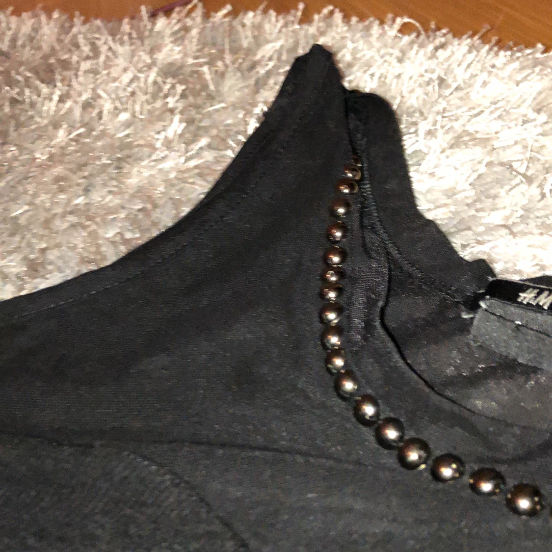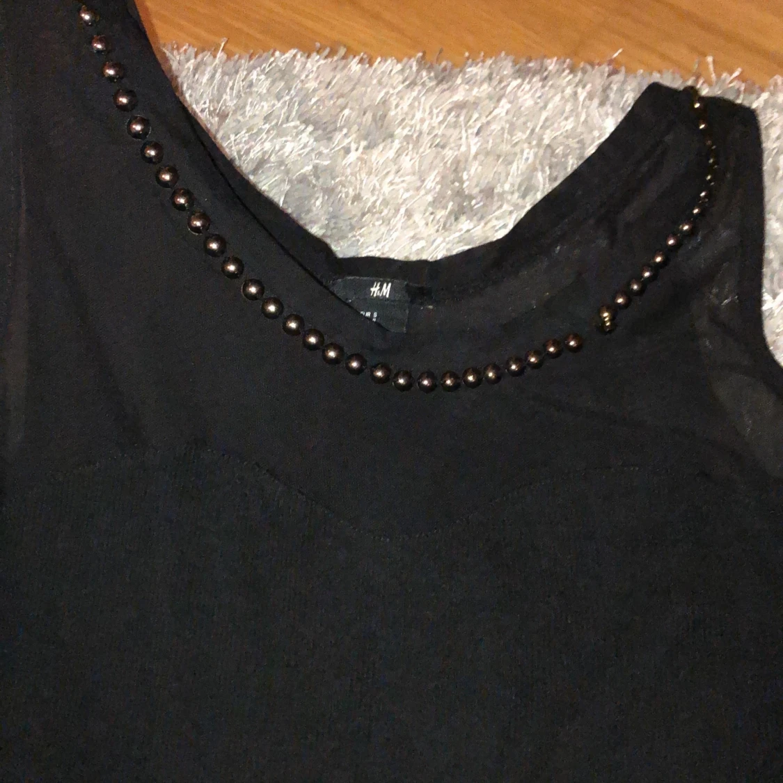 Helt oanvänd blus i ribbat material med en genomskinlig urringning i svart nät och en kant av guld pärlor
