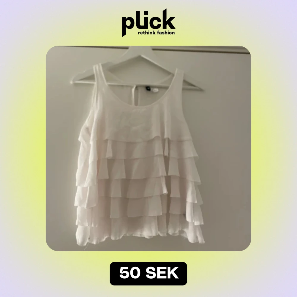 Vit blus med volangerđ€ Storlek 34đ€AnvĂ€nd men ganska bra skick, hĂ€nger lite smĂ„ trĂ„dar lĂ€ngst nerđ€ skriv privat för fler bilder eller frĂ„gorđ€