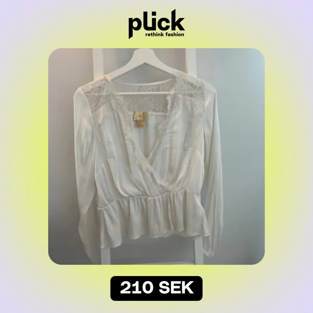 Vit topp i satin liknande material med spets från H&M i storlek M.