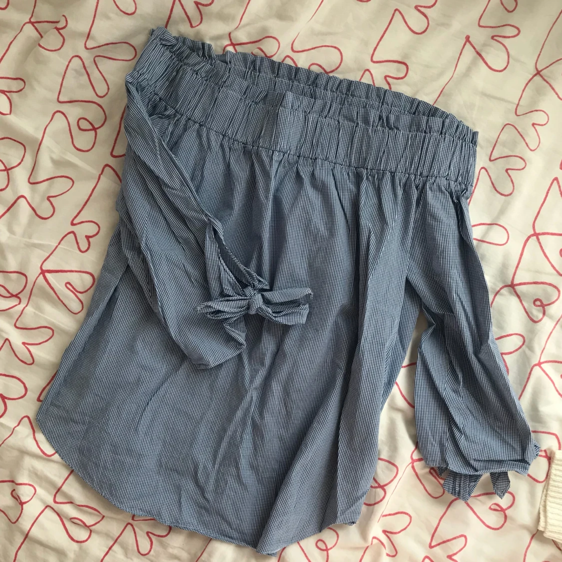 blårutig offshoulder blus från h&m. köpt förra sommaren och knappt använd något alls. köparen står för frakten. hojta till för fler bilder om så önskas :)