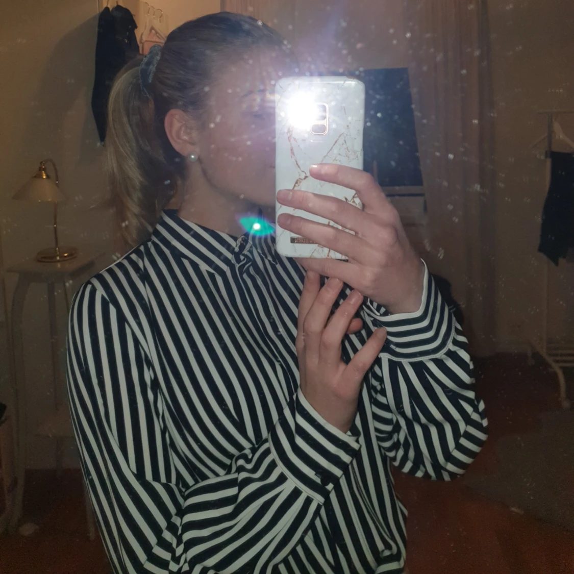 Randig blus från H&M, aldrig använd. Finns även i hel vit. Storlek 32, men ganska stor. Köpt nyligen för 300 kronor. Skrov vid intresse 💞