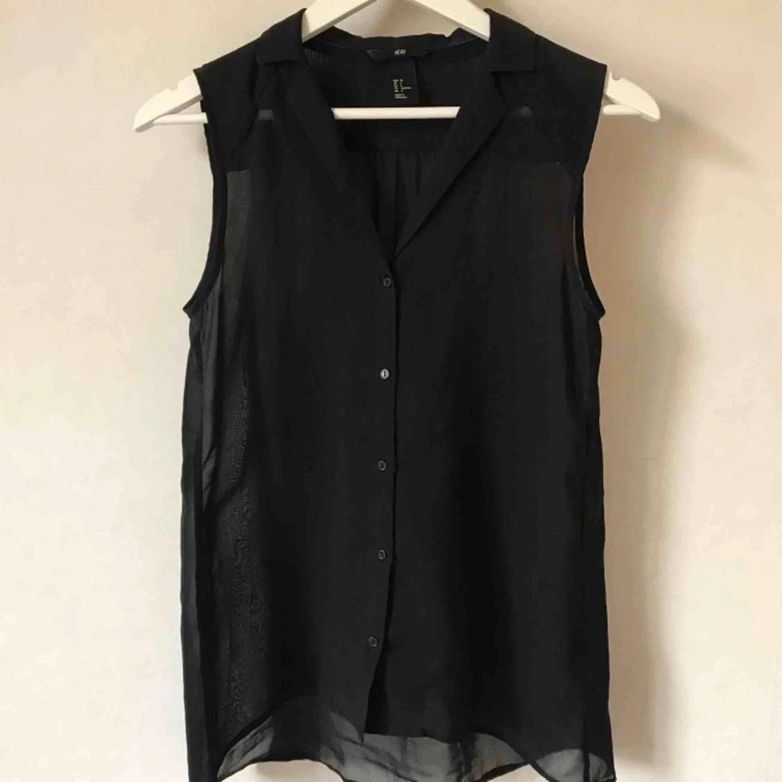 Skir svart ärmlös blus med veckad rygg. Genomsläppligt mjukt sidenliknande tyg. Kan mötas i Stockholm eller skicka mot fraktkostnad! ✨🌸✨