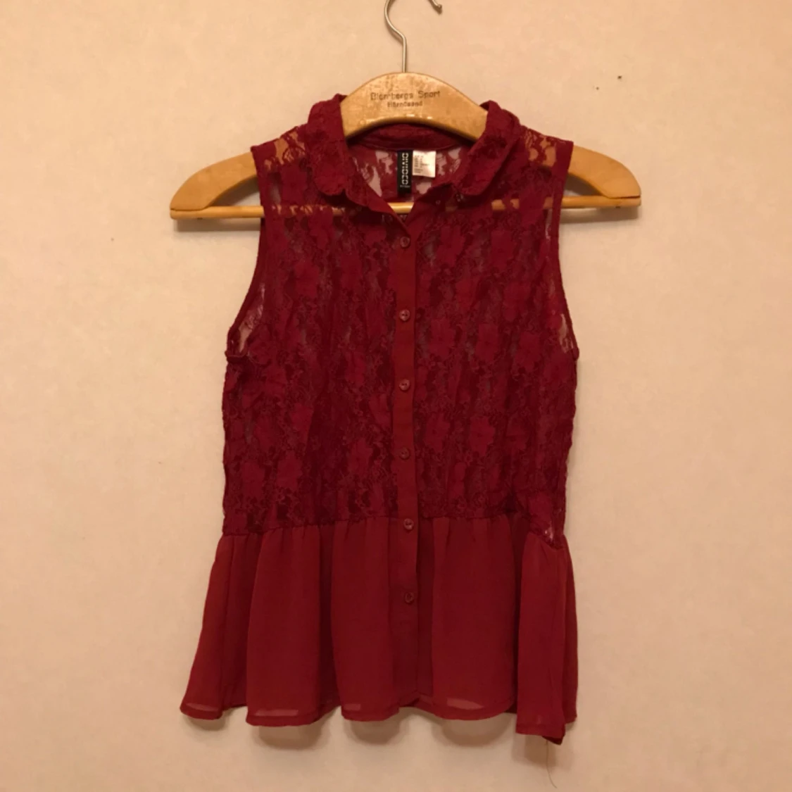 Röd spetsblus från H&M. Storlek 34. Frakt tillkommer. Rekommenderar att ha ett linne under.