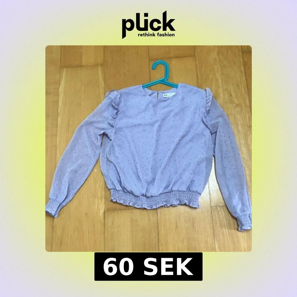 Supersöt ljuslila blus från H&M med små glittriga prickar över hela tyget. Blusen har långa ärmar, volangdetaljer på axlarna och smockad nederkant samt ärmslut. Perfekt för dig som vill ha något extra fint och trendigt!
