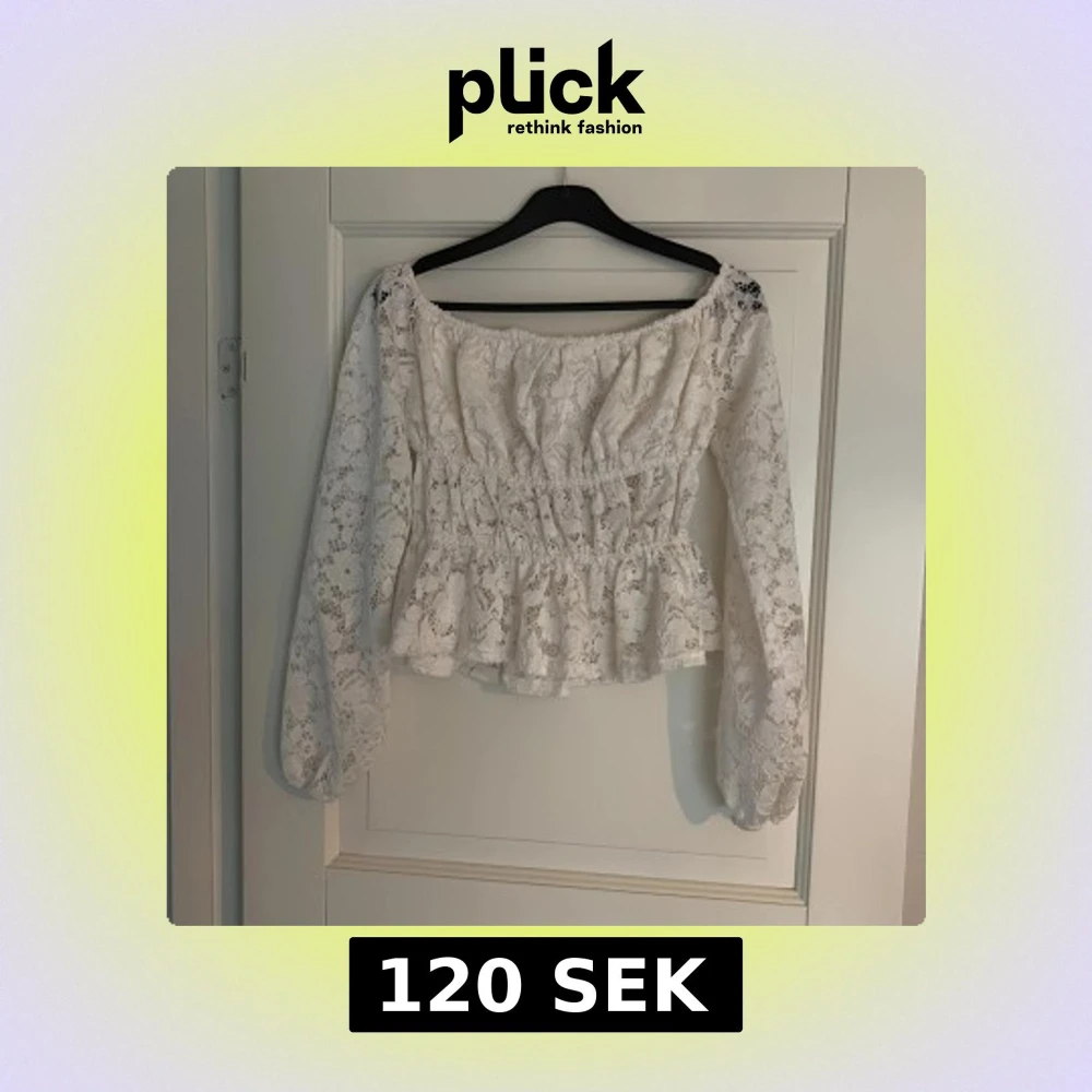 Superfin vit blus i spets från HM, helt oanvänd prislappen kvar. Blusen har långa ärmar, smockad midja och volang nertill. Nypris 199