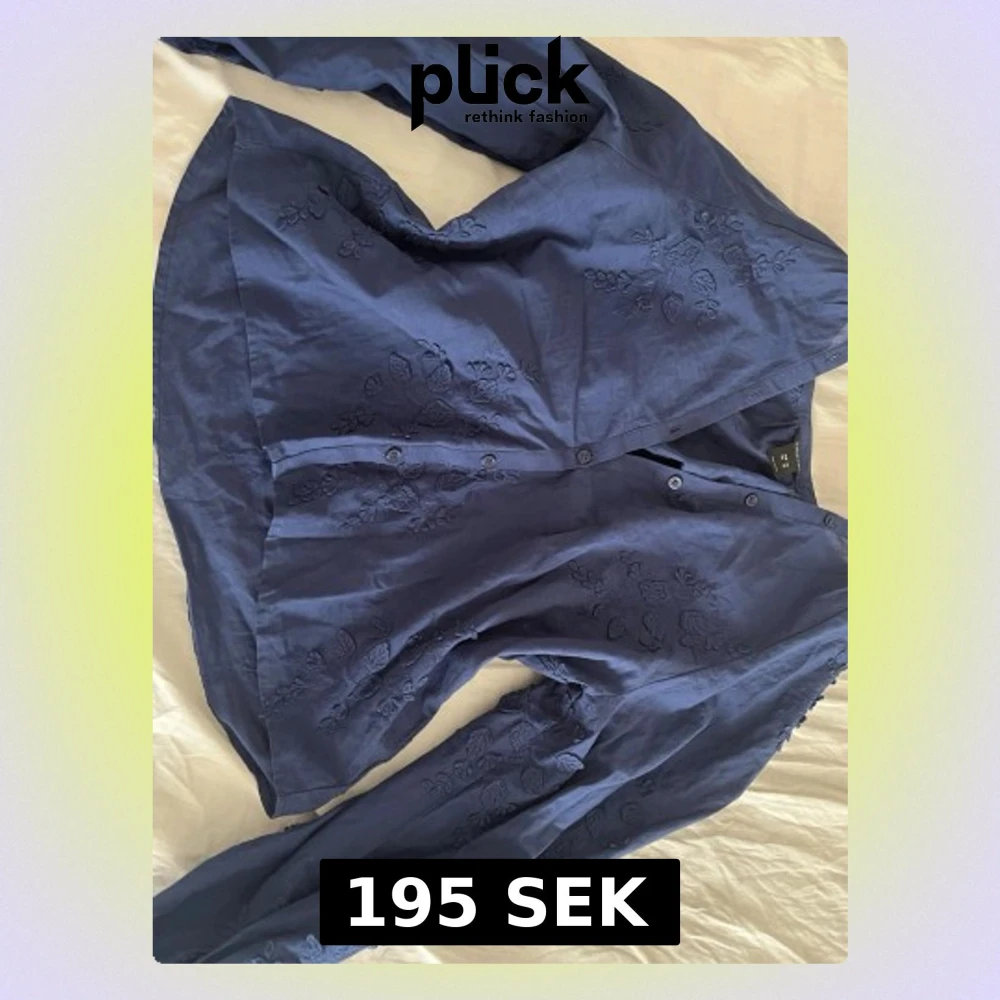 Snygg mörkblå blus med diskreta blombroderier över hela tyget. Blusen har knäppning framtill och långa ärmar. Perfekt för dig som gillar en stilren men ändå detaljrik look. Materialet känns lätt och luftigt.