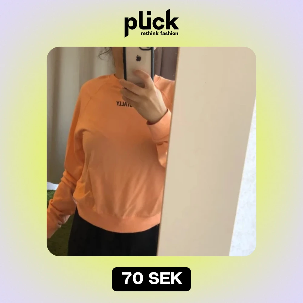 Orangea tröja med tryck där det står ”totally” i versaler. Gott skick, knappt använd. Tycker den har en mycket fin passform, men är inte särskilt förtjust i trycket