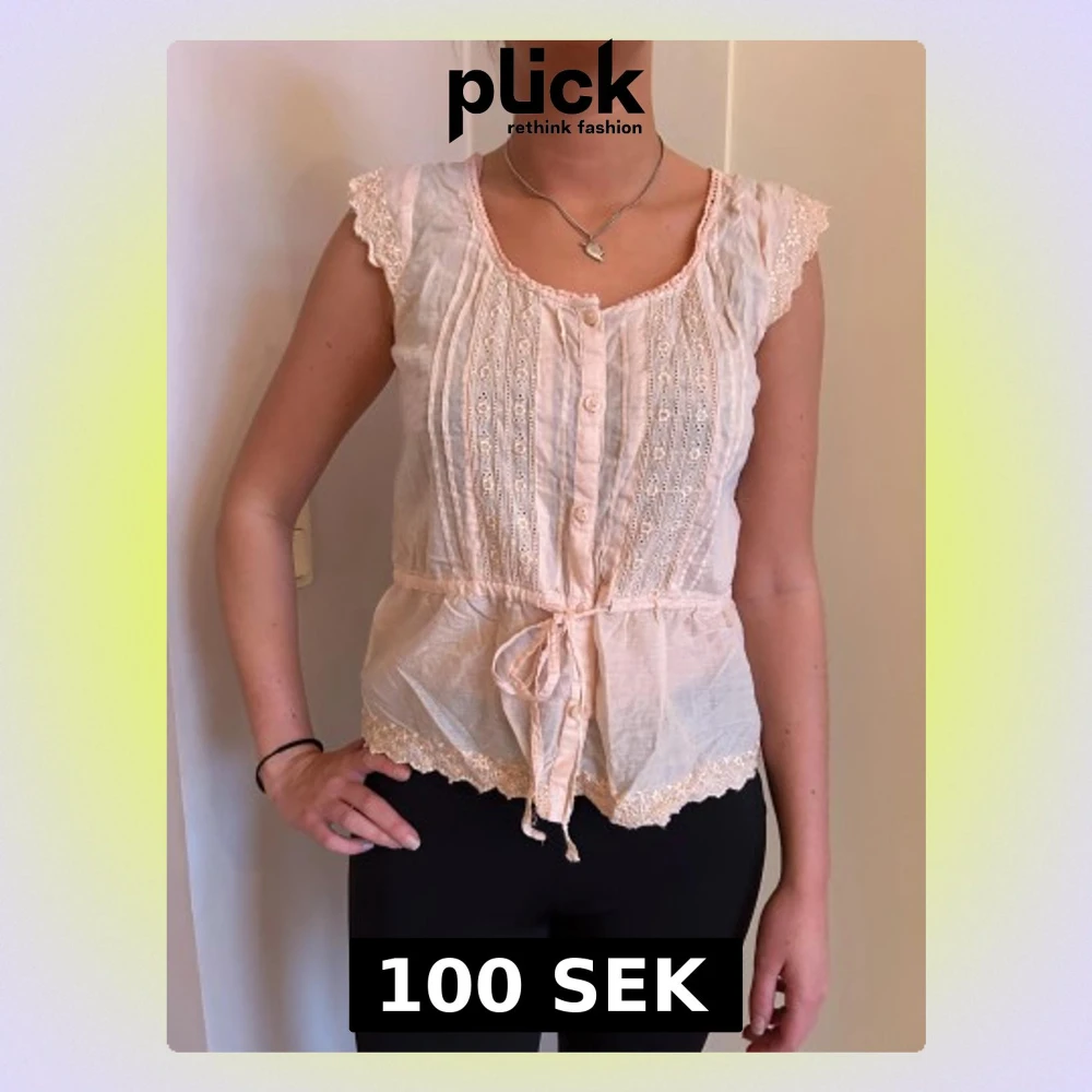 Gullig rosa blus med knyte i midjan. Blusen har knappar fram och detaljer bĂ„de fram och bak. đ