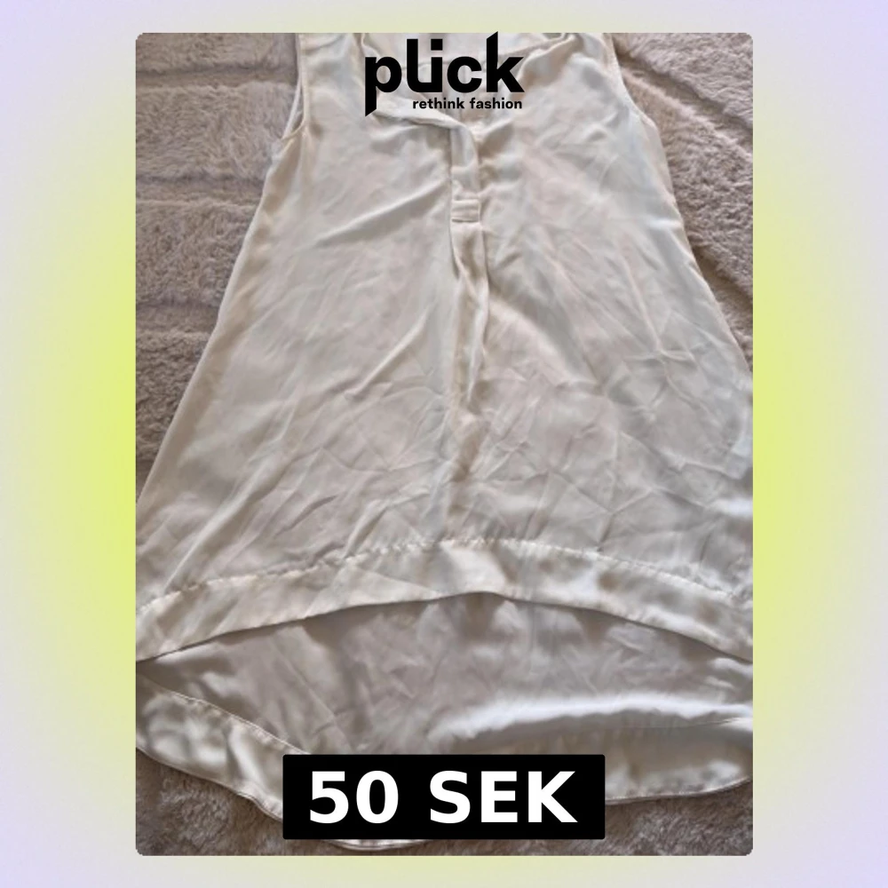 Säljer en stilren vit blus från H&M i storlek 38. Blusen är ärmlös, har en lätt v-ringning med knappdetalj framtill och är längre baktill för en snygg siluett. Tillverkad i ett mjukt, tunt material som känns svalt och skönt.