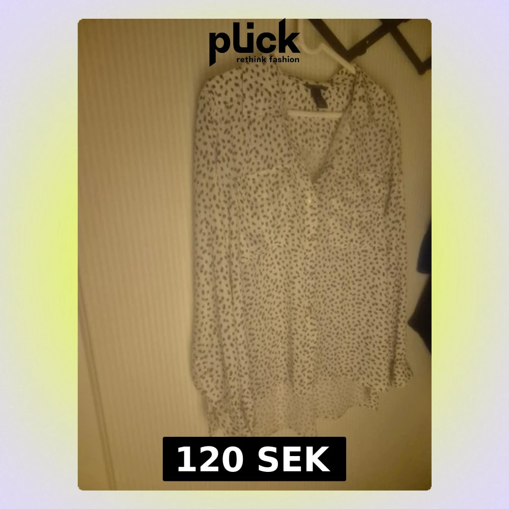 Snygg vit blus från H&M med svarta prickar och två bröstfickor. Blusen har en avslappnad passform, knappar framtill och långa ärmar. Tillverkad i ett lätt och luftigt material som ger en skön känsla.