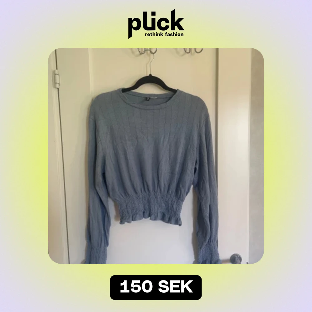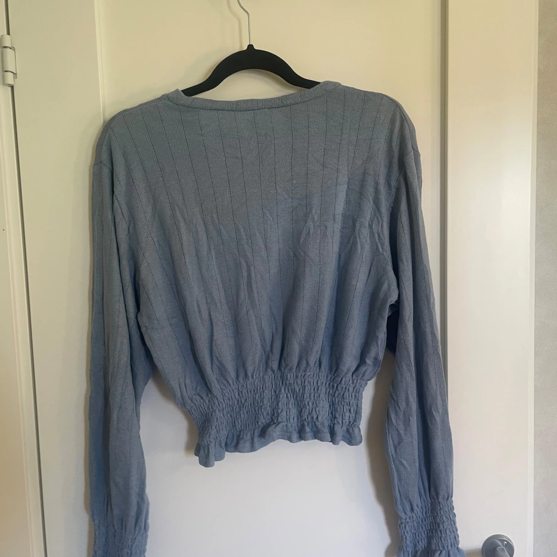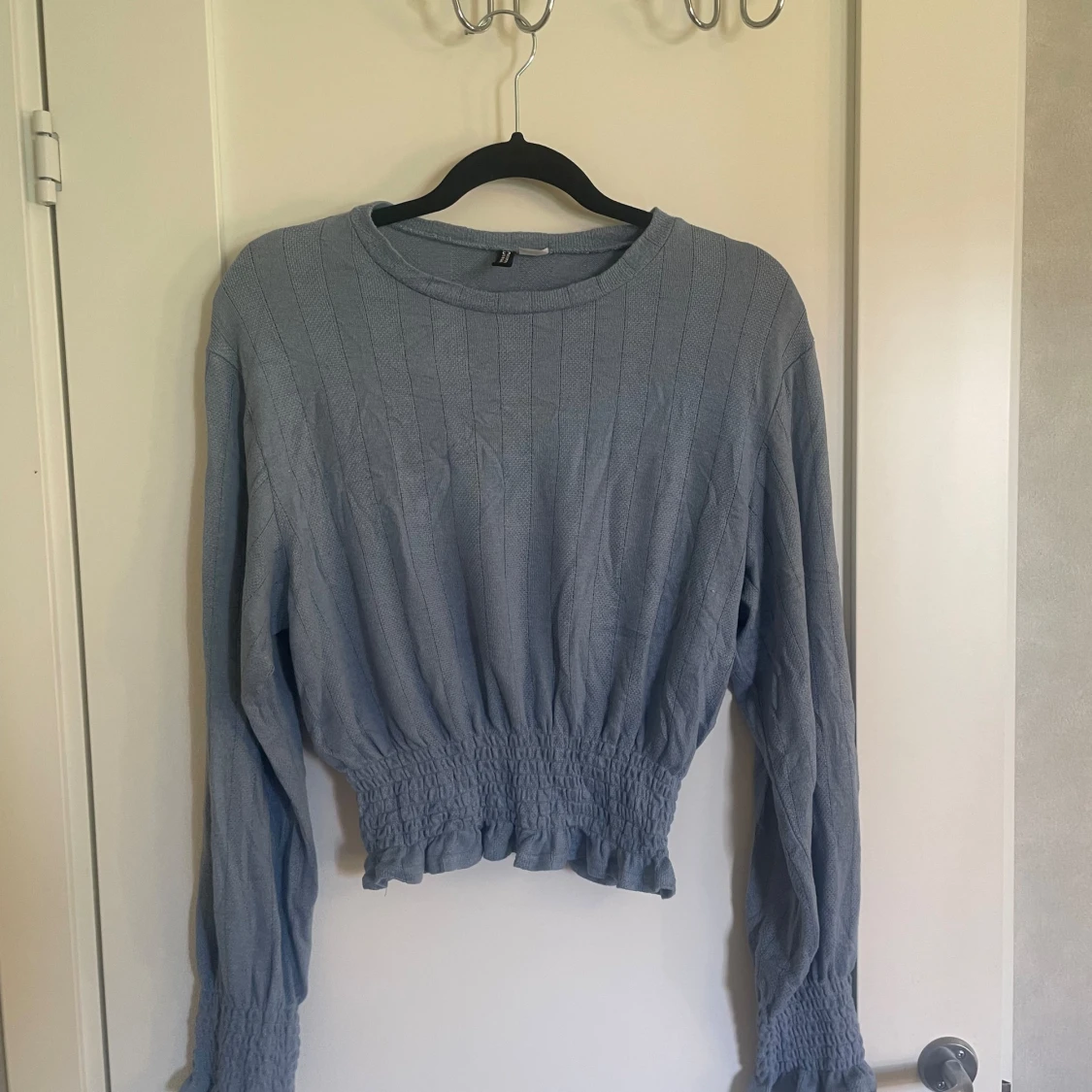 Säljer en superfin blå blus. Den är stickad och har långa ärmar. Tröjan har en tight passform vid midjan och är perfekt för höst och vår. Den är i bra skick och redo för en ny ägare!