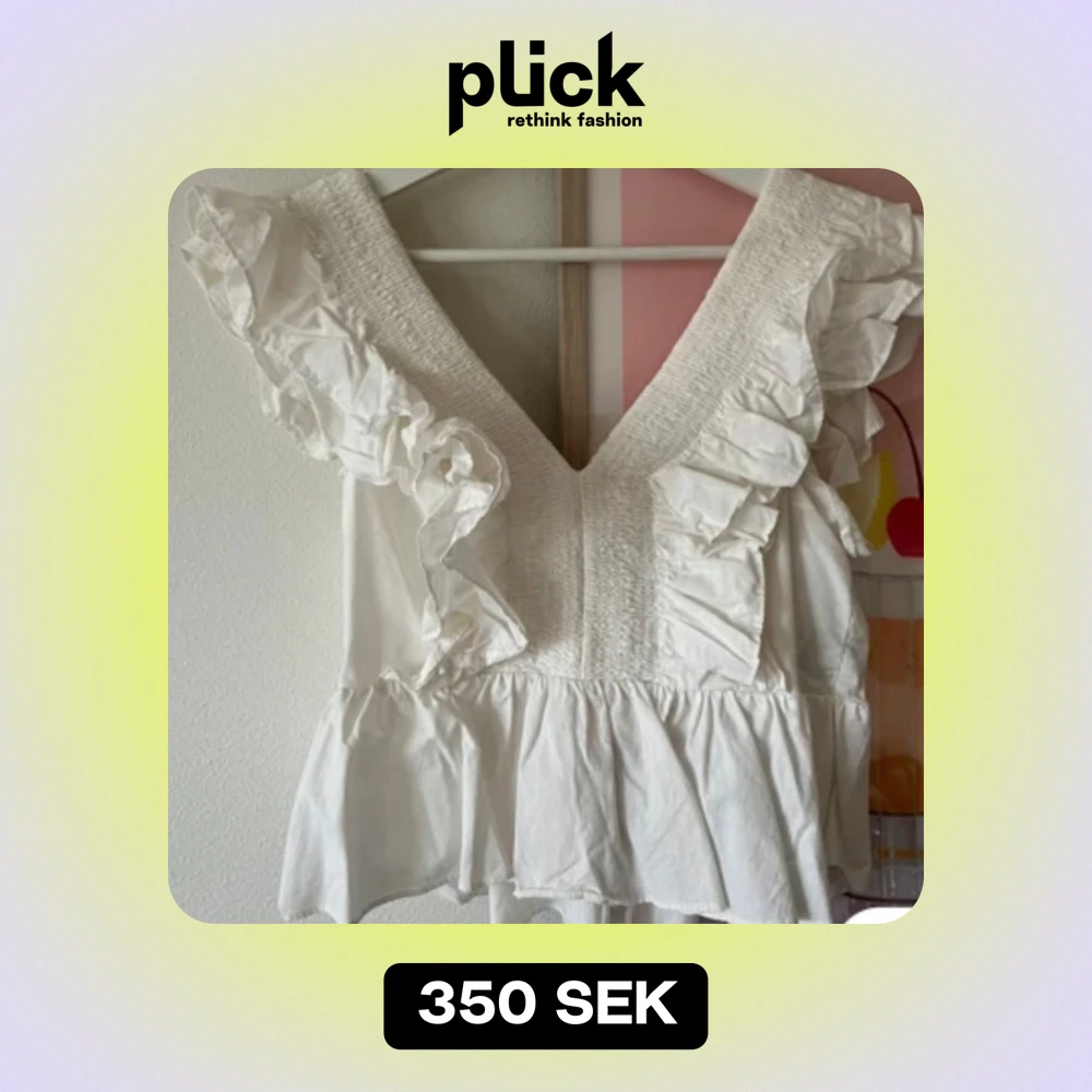 Supersöt vit blus från HM som är köpt här på plick. Använd 1 gång på grund av att det tyvärr inte var min smak💖