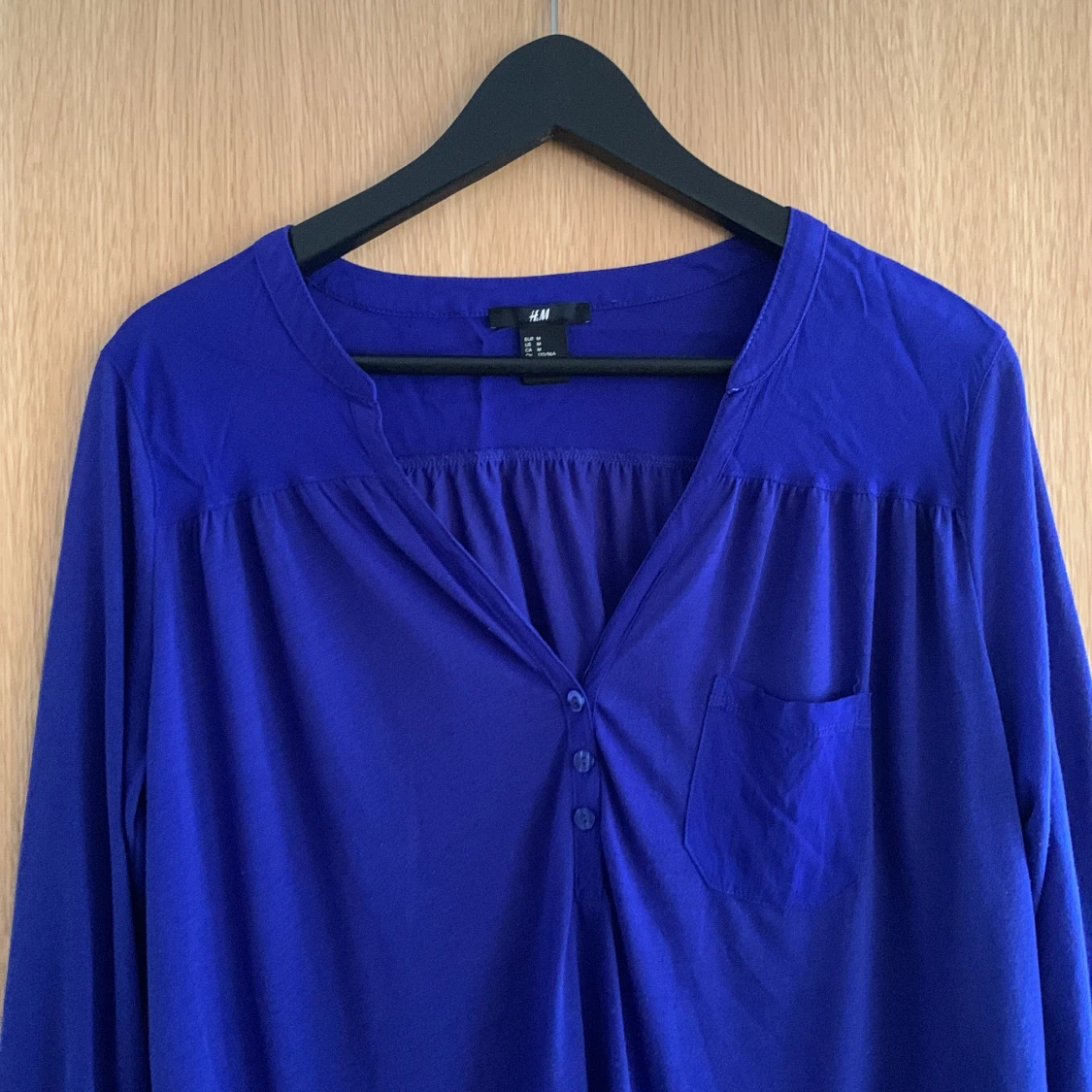 Fin, oanvänd lila/blå blus från H&M. Strl M. Ficka på bröstet, kortare ärmar. Jätteskön i tyget! ☀️