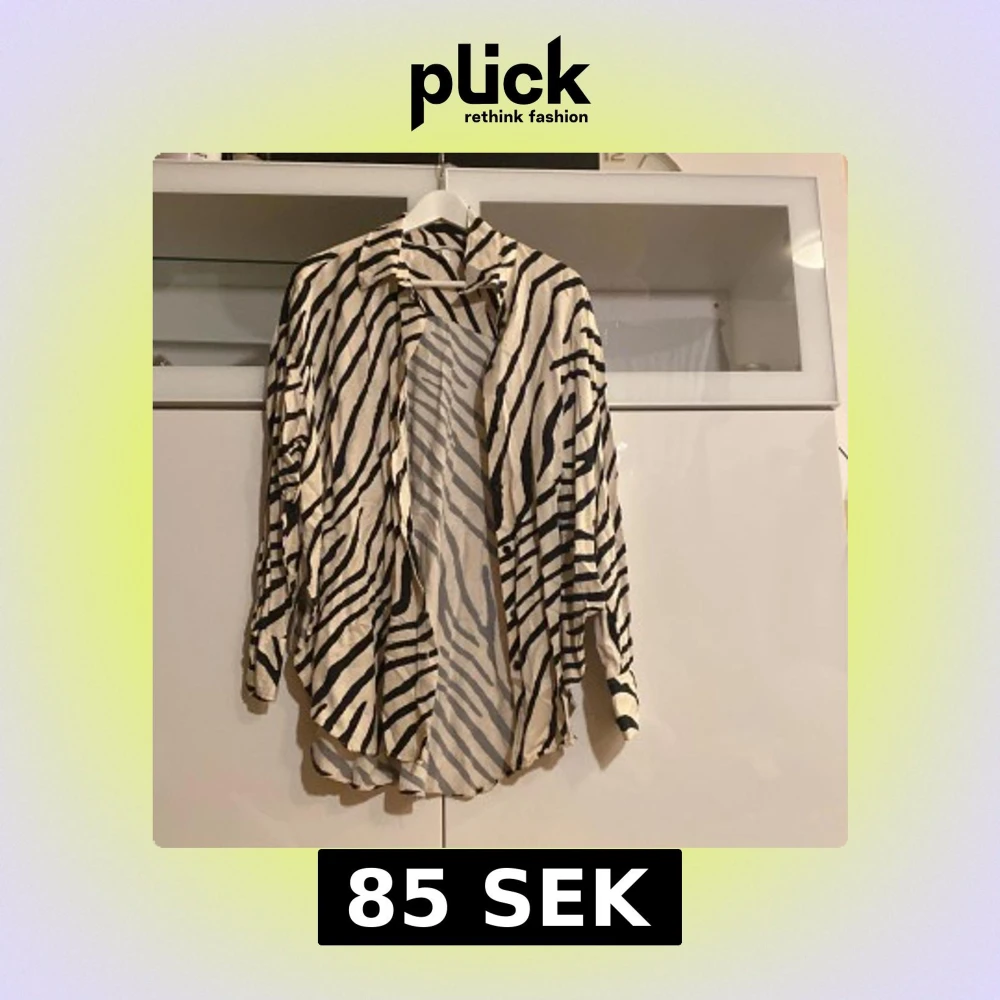 Säljer en snygg zebramönstrad skjorta i vitt och svart. Skjortan har lång ärm och en lös passform, perfekt för dig som vill sticka ut lite extra. Den är tillverkad i ett lätt material och har klassisk krage.