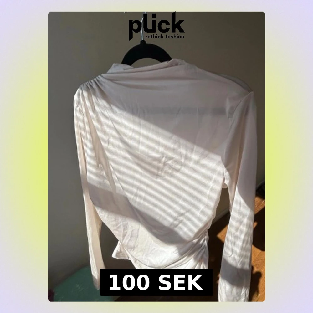 Säljer en ljusbeige långärmad blus från H&M i blankt, mjukt material. Blusen har en enkel och stilren design med lätt drapering i midjan och rundad hals. Perfekt att styla med jeans eller kjol för en clean look🥂💗