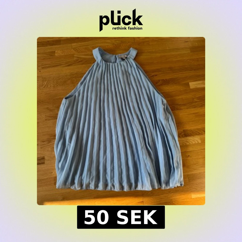 Supersöt ljusblå top från H&M med plisserad design och hög hals. Klänningen är ärmlös och har en luftig, kort passform som ger en chill vibe. Perfekt för varma dagar och när du vill känna dig extra stylish.