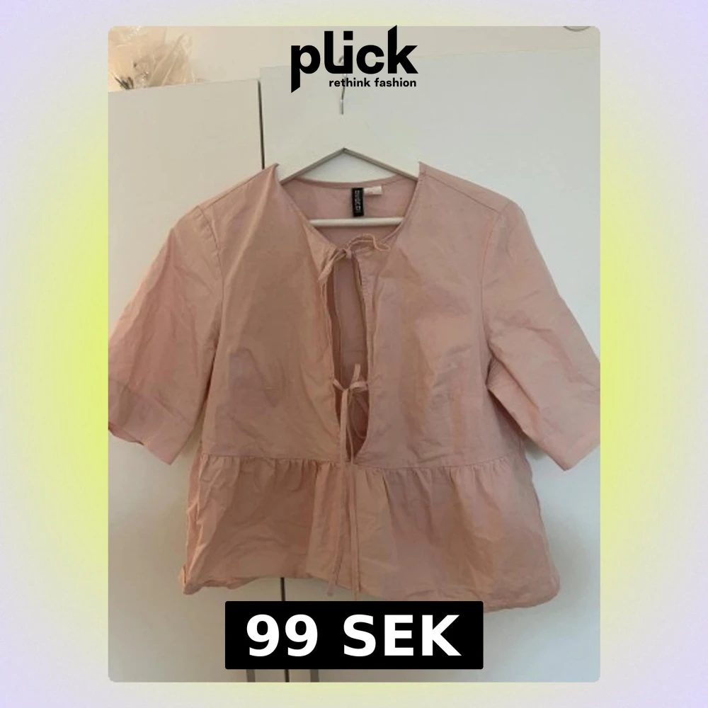 Söt ljusrosa blus med knytband framtill och avslappnad passform. Använd 2 gånger