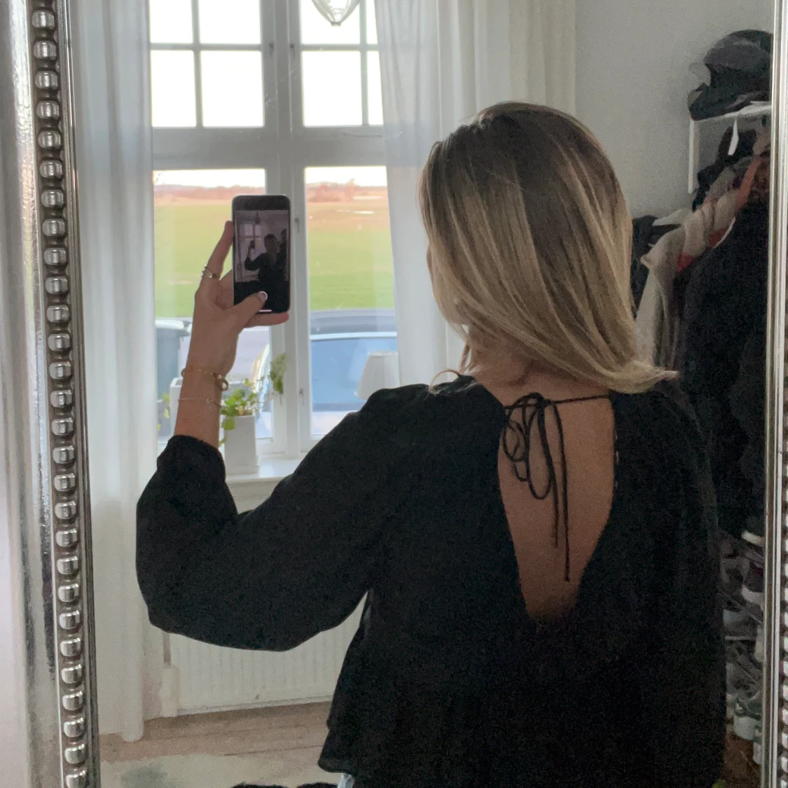 Svart blus med öppen rygg från HM!! Klippt bort lappen men tror den är i storlek S💕Säljer för 199kr
