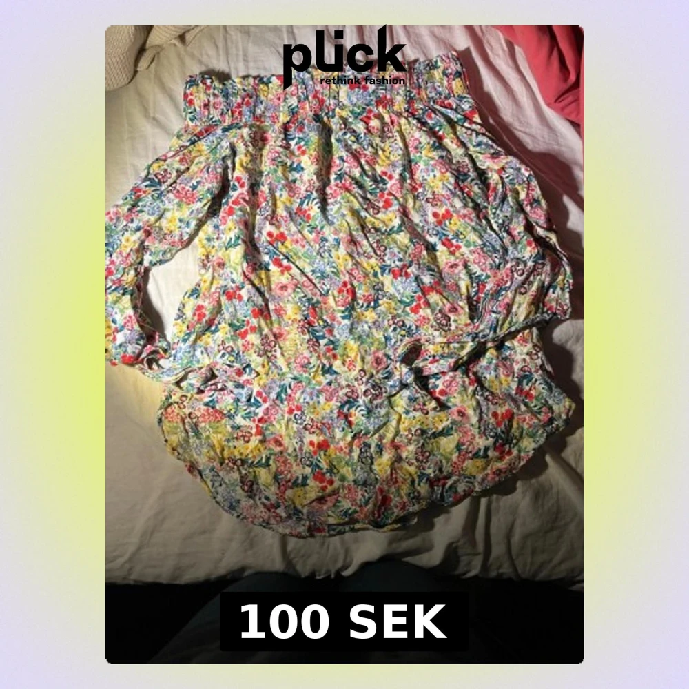 Söt offshoulder blus med färgglatt blommönster i pastellfärger som rosa, gul, blå och grön.