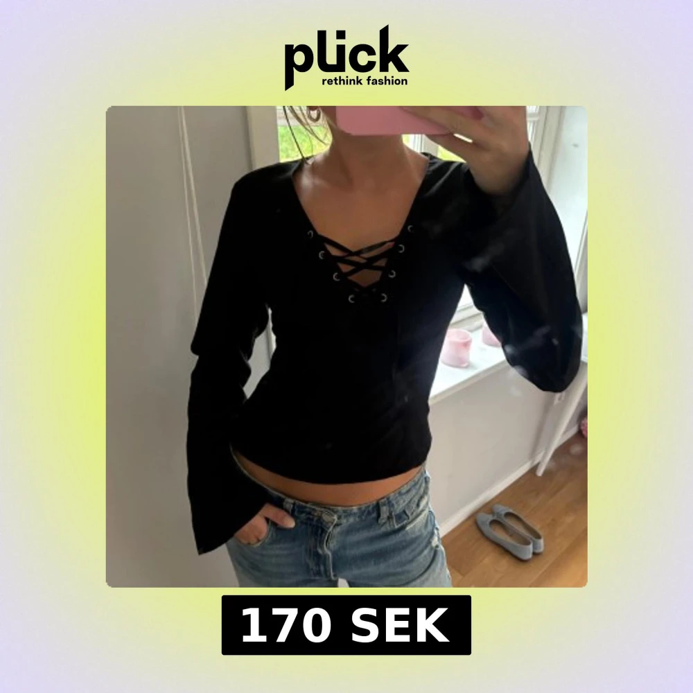Super söt topp från hm med långa lite vidare ärmar, snörning framtill och en croppad passform. Perfekt inför hösten, strl S. Nyskick