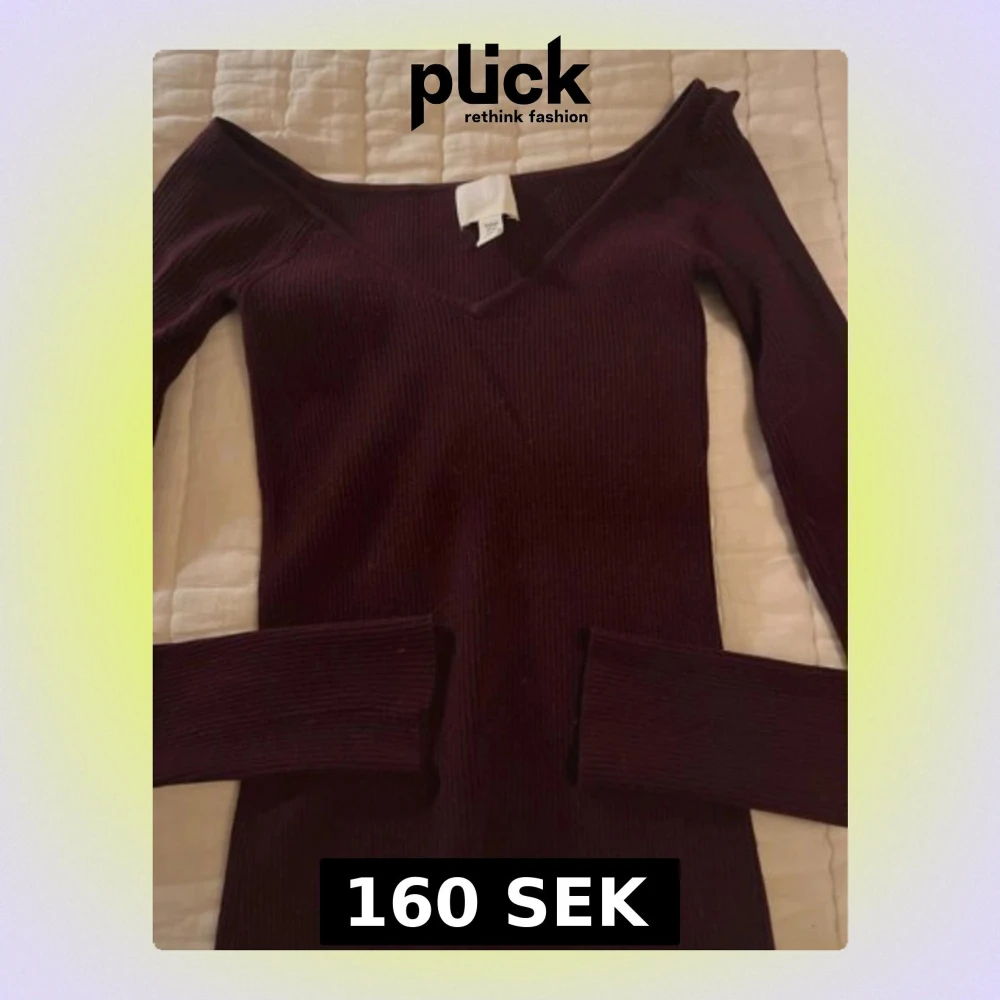 Snygg mörkröd ribbad tröja från H&M med v-ringad hals och lång ärm. Modellen är tight och har en offshoulder-look som ger en trendig vibe. Perfekt för dig som gillar stilrena och enkla plagg med en twist.