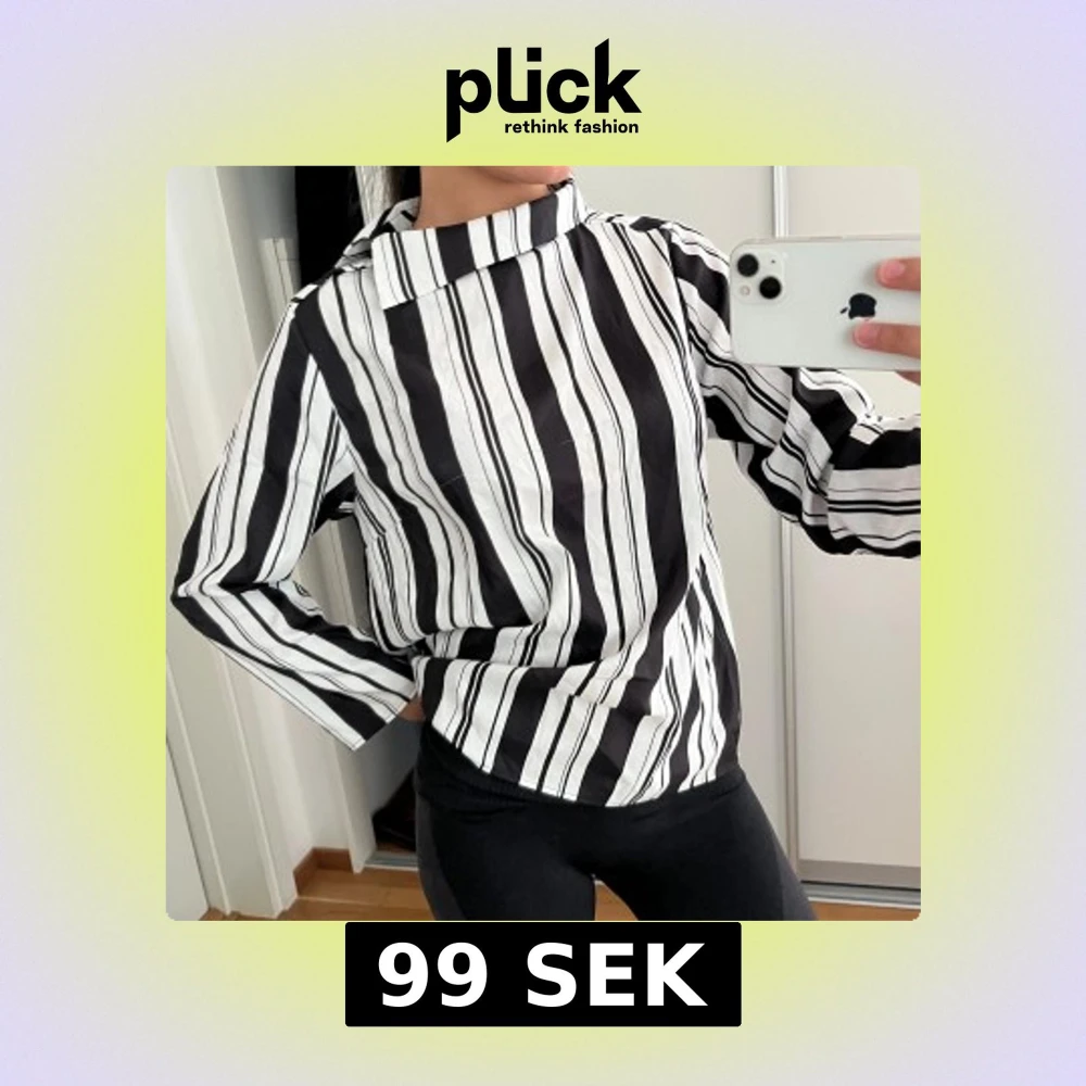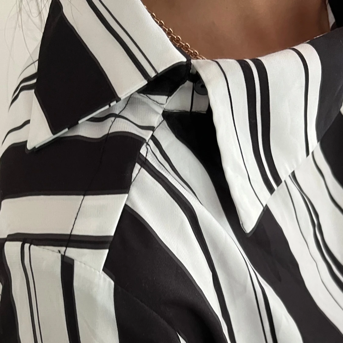 Snygg blus/skjorta? med svarta och vita ränder och unik krage. Perfekt för vardagligt bruk och lite speciella tillfällen!