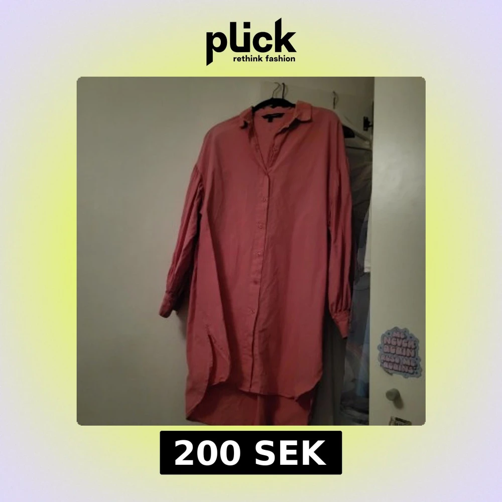 Säljer en rosa skjortklänning med knappar framtill. Klänningen har en lös passform och långa ärmar, perfekt för en avslappnad stil. Den är tillverkad i ett lätt och bekvämt material.