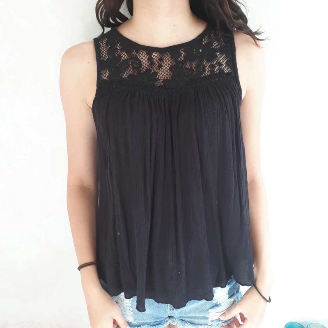 En svart fin sommar blus i storlek 158 men passar som storlek Xs. Bra kvalité och använd ett fåtal gånger.
