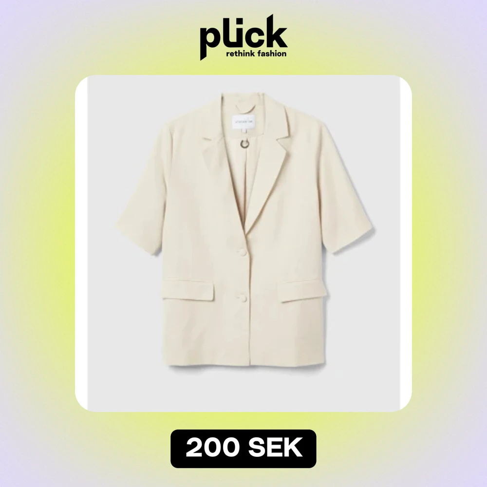 Kavaj med korta ärmar, Stockholm. Strl XS, passar även liten S. 200kr. (Inköpt för 999kr) Material: 83% lyocell 17% lin Foder: 98% polyester 2% elastan