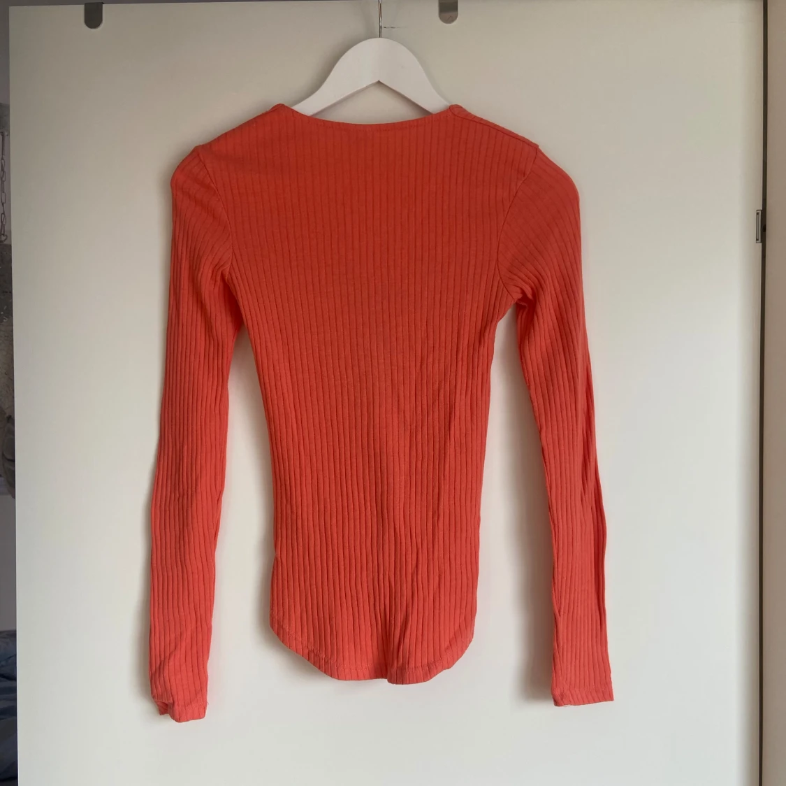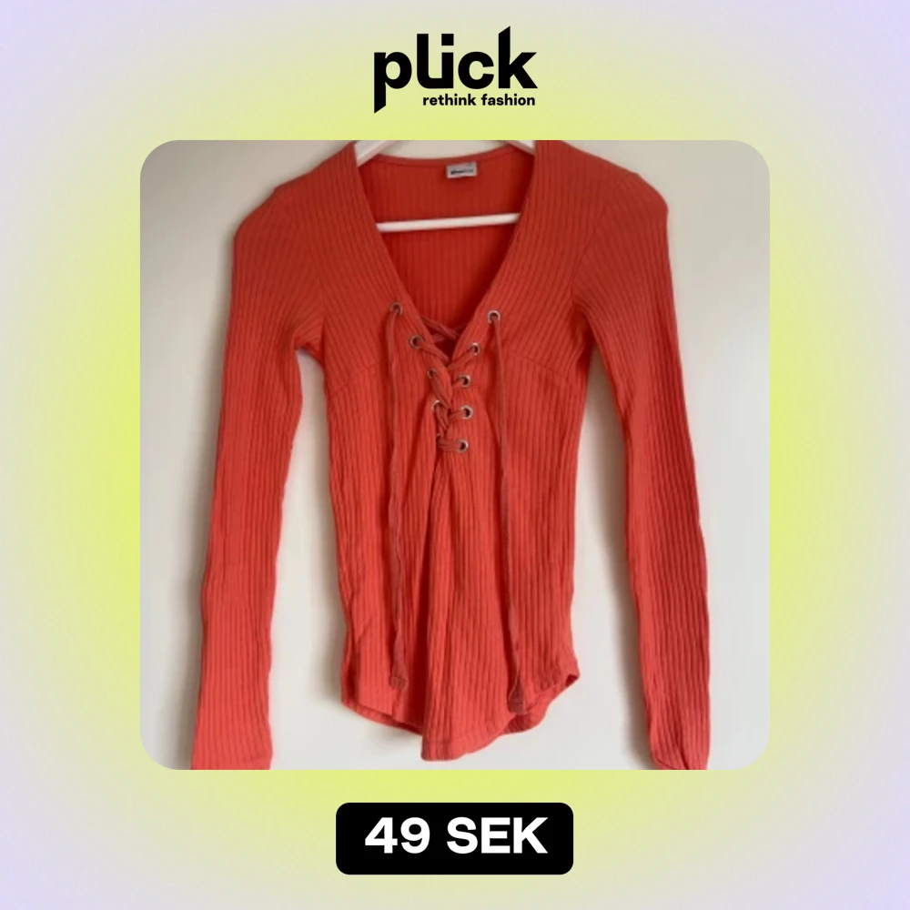 Jättefin topp med bad vid bröstet som Kan snytas/spännas åt hur man vill. Den är fint skick! Toppen kommer från Gina Tricot Stl XS (normal i storlek) Finns i organge, ljusrosa samt marinblå!!