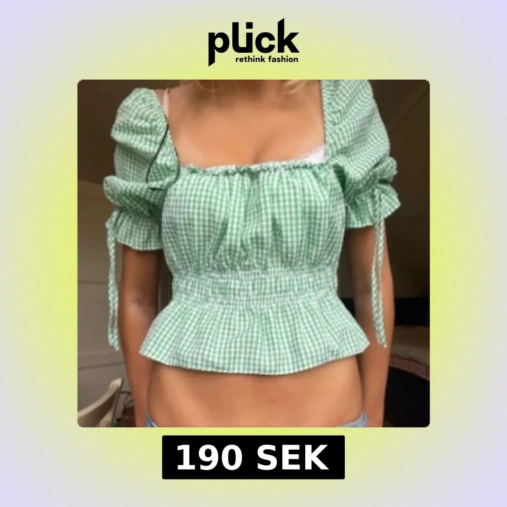 Superfin grön och vit rutig blus med puffiga korta ärmar och knyt vid ärmslutet. I storlek S!