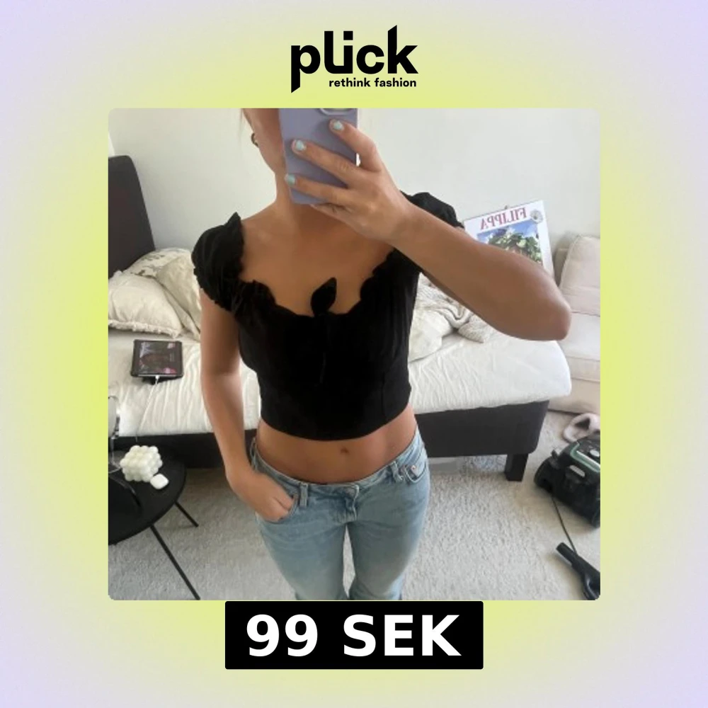 Säljer denna gulliga, korta toppen från Boohoo❤️ Tröjan är knappt använd och är i toppskick, den har inga tecken på användning 💕 Den har en knytning där framme och har söta volangdetaljer