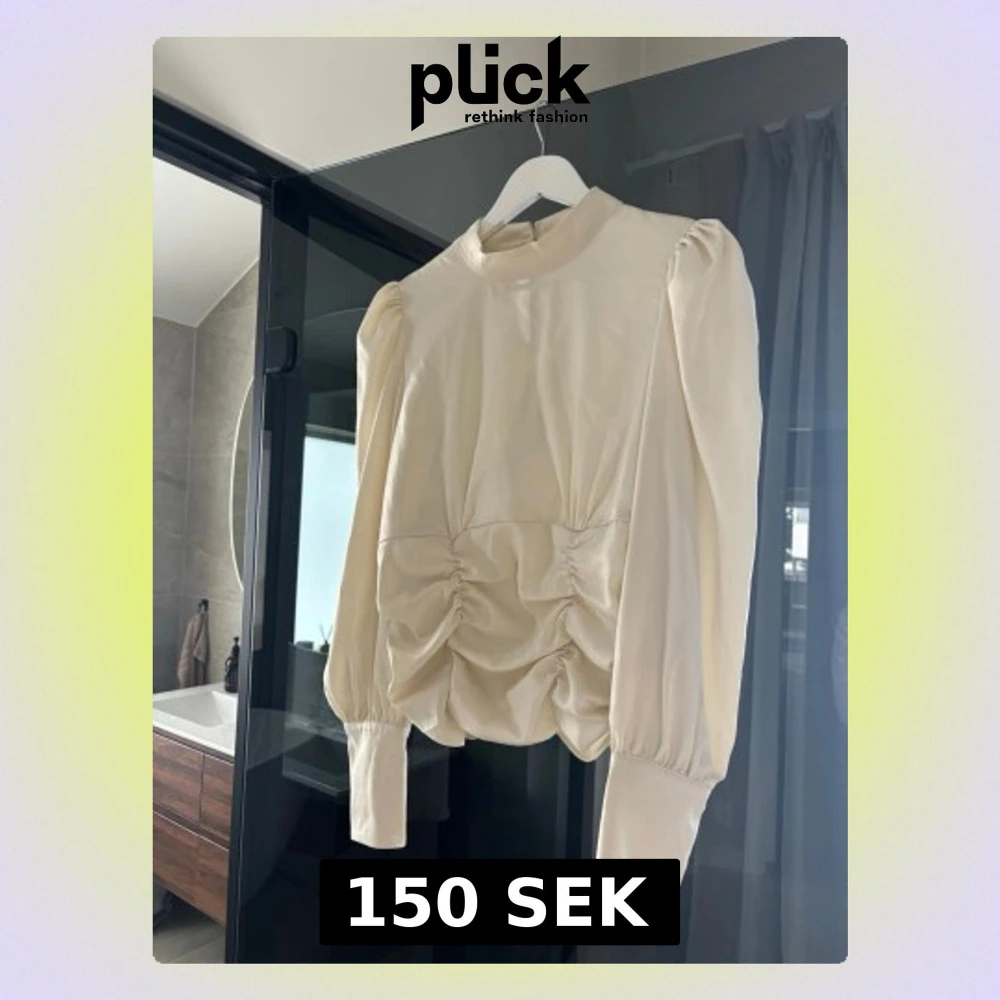 Krämvit blus med puffärm och rynk