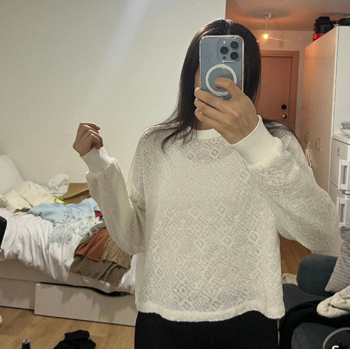En vit sweatshirt från Mavi, storlek L, passar som oversize. Endast använd 3 gånger. Köparen står för frakten.