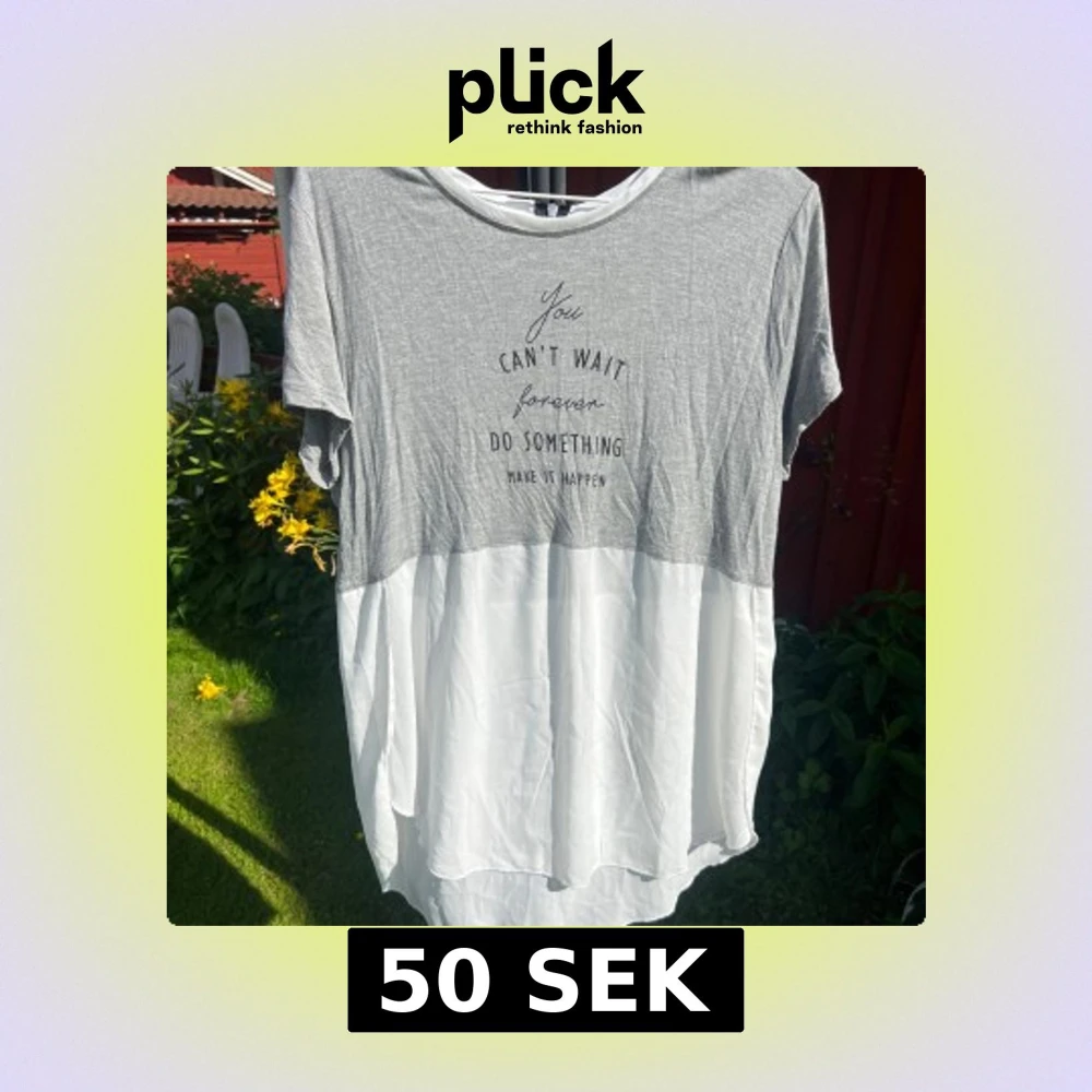 Tunika i tvådelad look från Lipo Lipo, med grå överdel i t-shirt material, och vit nederdel i tunnare/genomskinligare material. Står storlek XL (48/50), men skulle säga mer M/L.