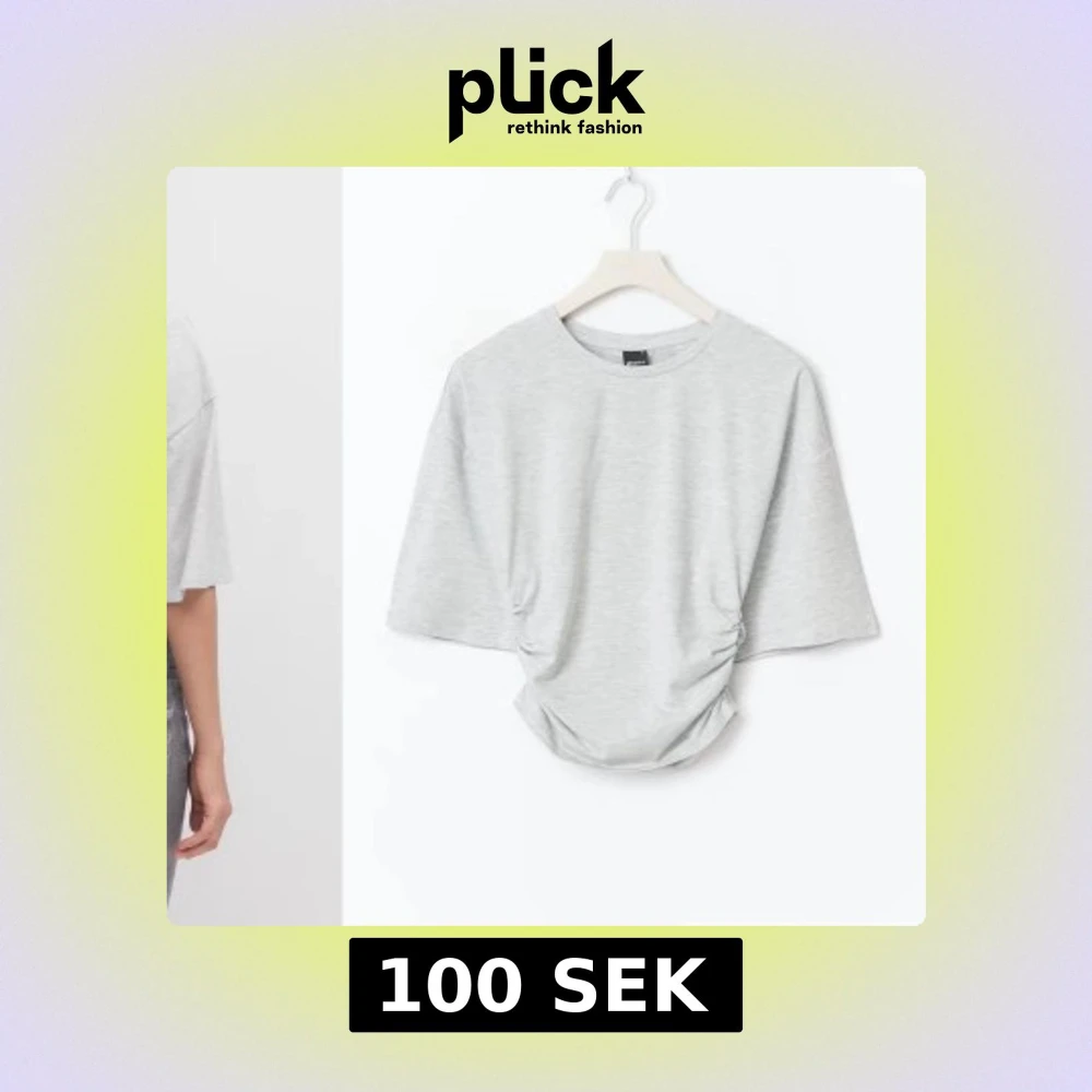 Ljusgrå topp med korta ärmar och från lager 157z T-shirten har en lös passform upptill och rynkade detaljer i sidorna framtill som ger en snygg midja. Tillverkad i mjuk bomullsmix, perfekt för en avslappnad stil. Aldrig använd.