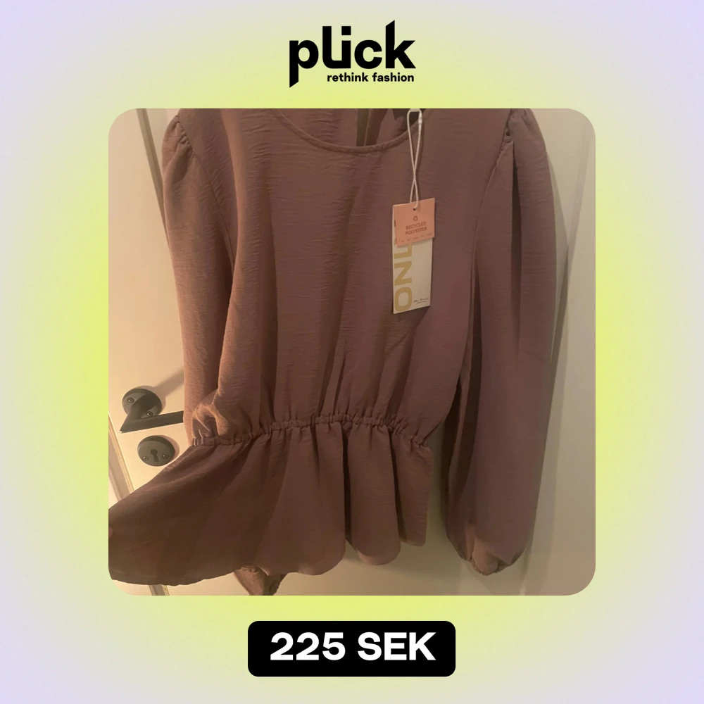 Säljer en superfin långärmad blus från ONLY i en elderberry-färg. Blusen har intagen midja och med en knapp där back i halsen. Helt ny med tag kvar, köptes för 400 kr.