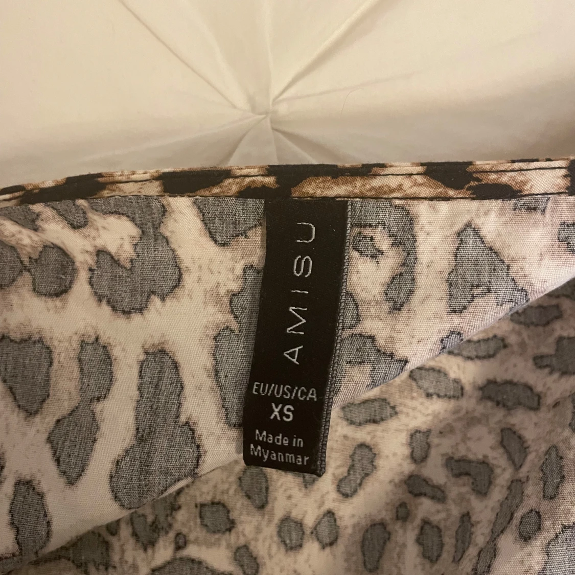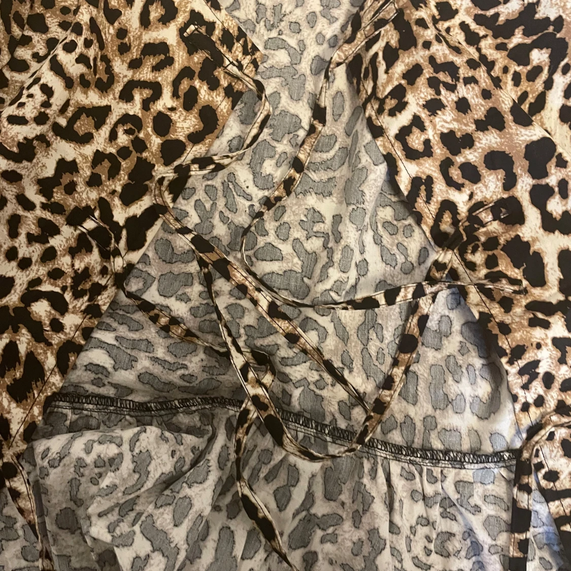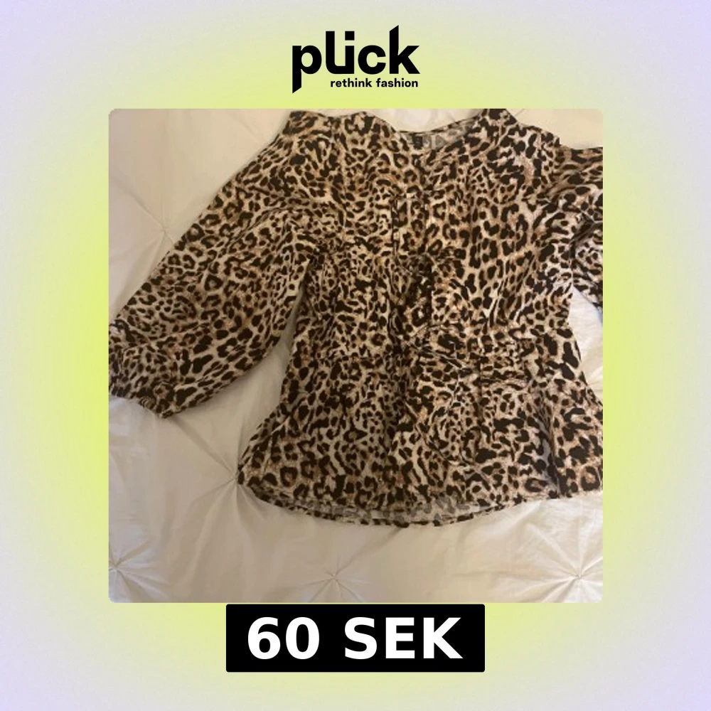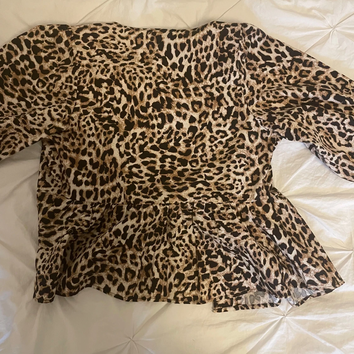 En fin blus där man knyter ihop den med tre separata rosetter på framsidan. Den är i leopard och endast använd max 4 ggr. 🐆 Har resår i ärmarna och de är inte fullt långa. Passar xs men också s och m. Hör av dig med frågor!