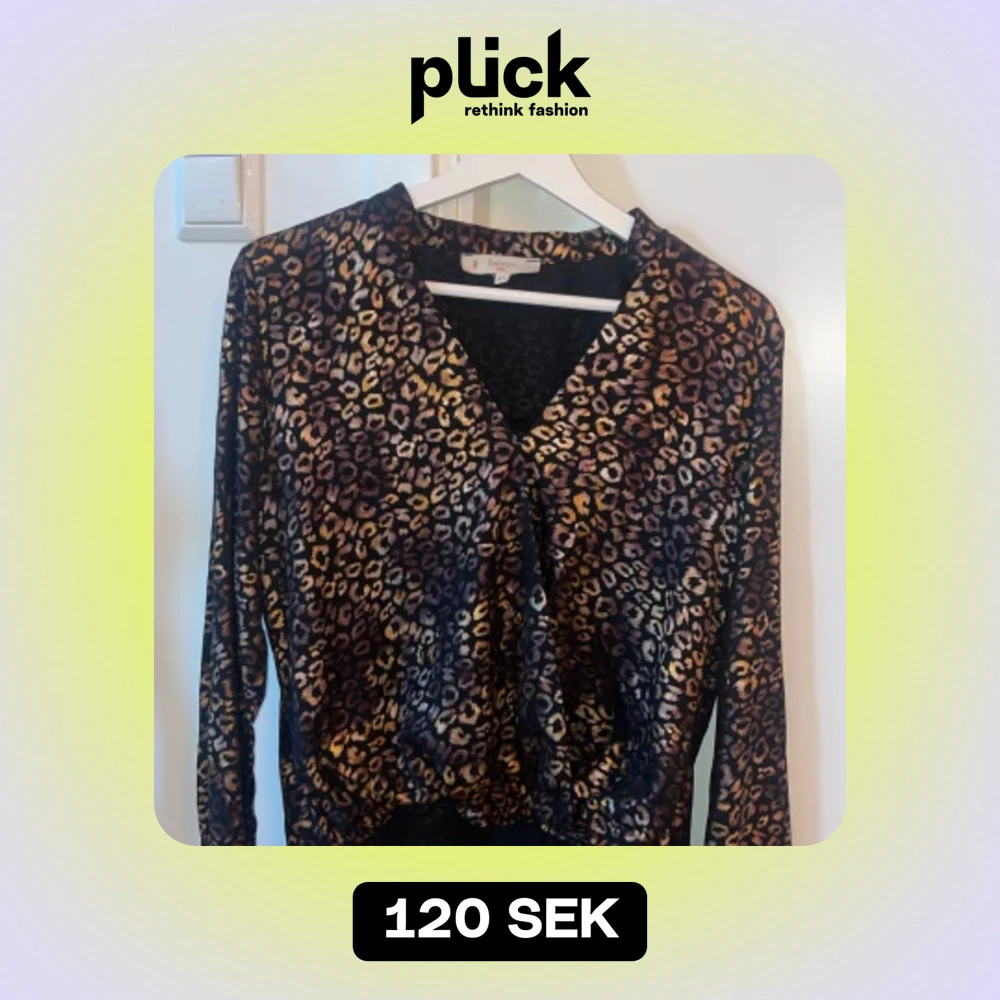 Satin blus med leopard mönster Kort fram, lång bak. Super snygg Liten i storlek! L passar S/M