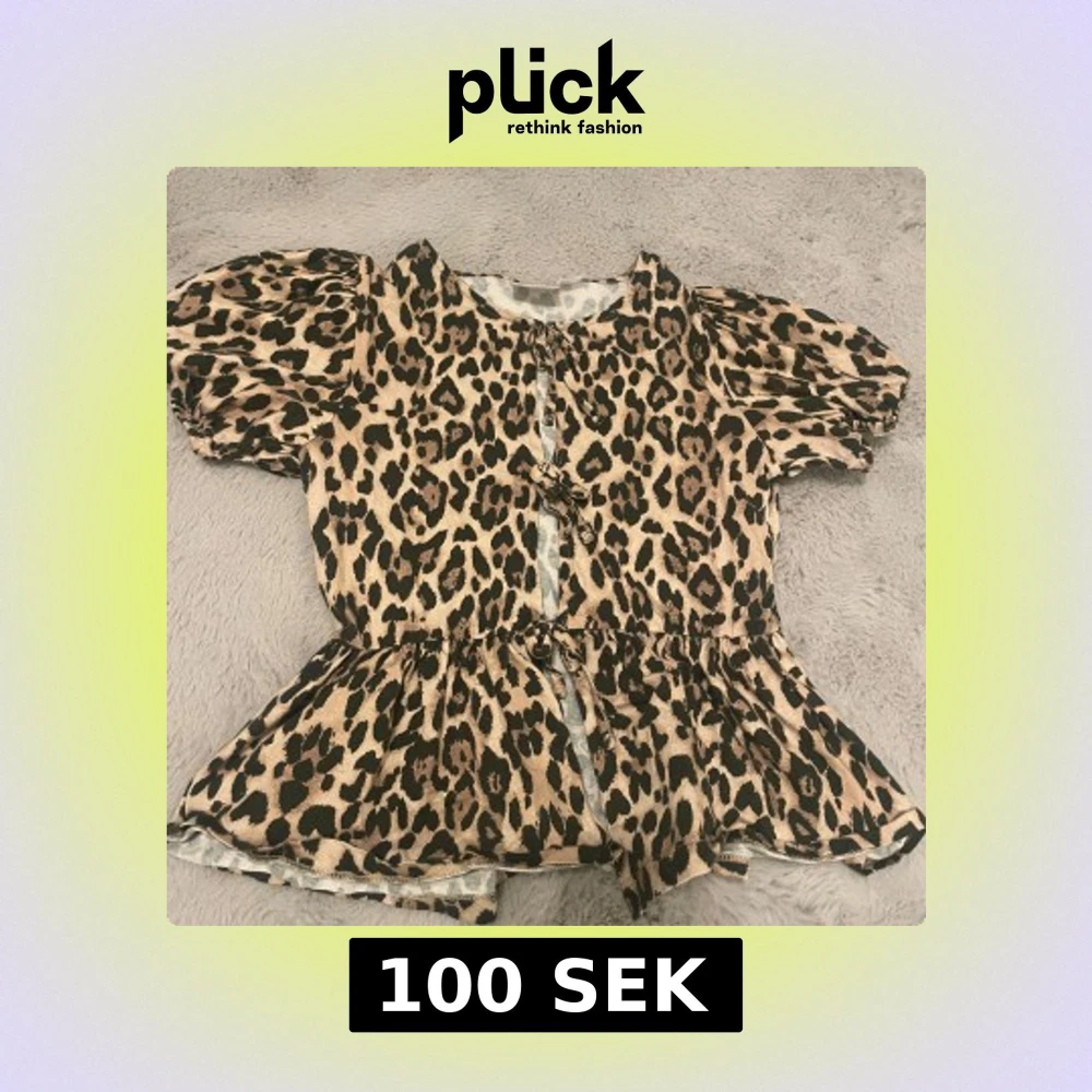Supersnygg blus med leopardmönster från Gina Tricot, använd cirka en gång och är i jätte bra skick. Modellen har puffiga korta ärmar, volang nertill och tre knytningar framtill som ger en cool och trendig look. Perfekt för dig som vill sticka ut med ett djurmönstrat statement-plagg.