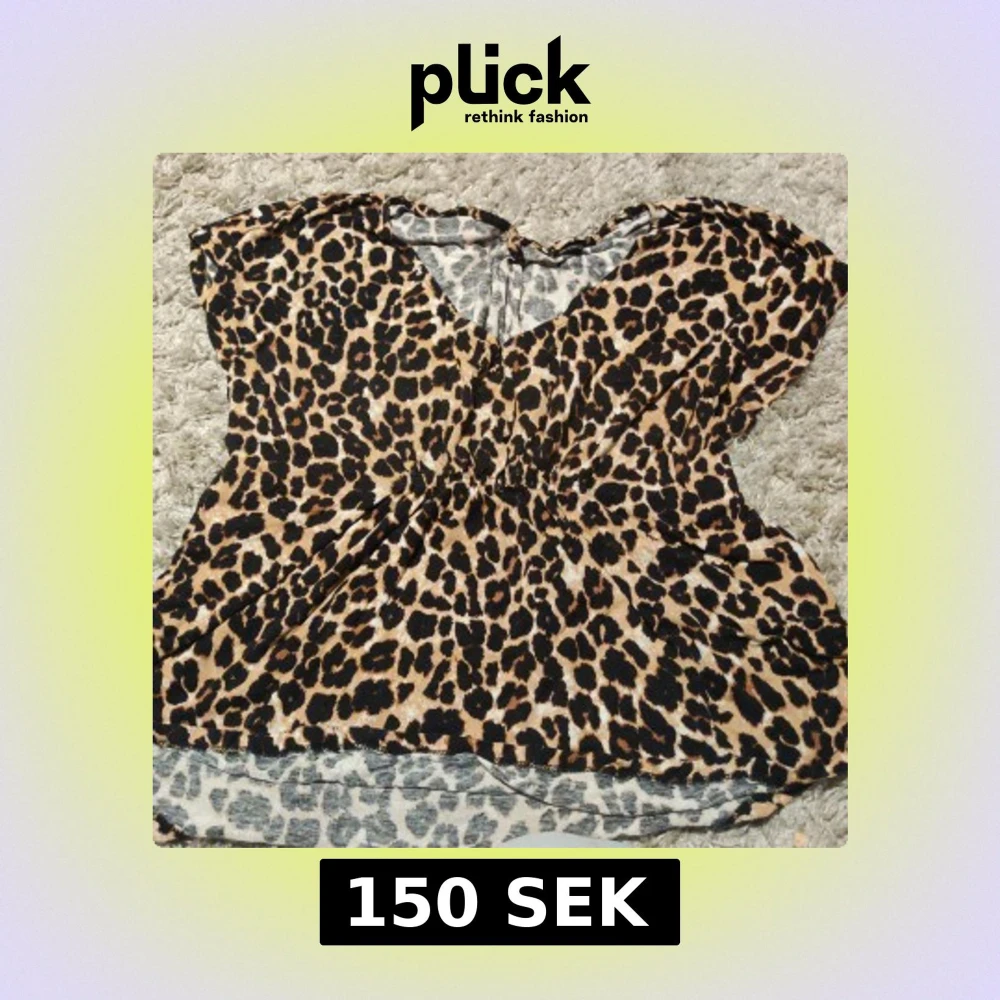 Säljer en snygg blus från Gina Tricot i storlek M med leopardmönster i svart och beige. Blusen har v-ringning, korta ärmar och ett lätt rynkat parti i midjan som ger en schysst siluett. Perfekt för dig som vill sticka ut med djurmönster!