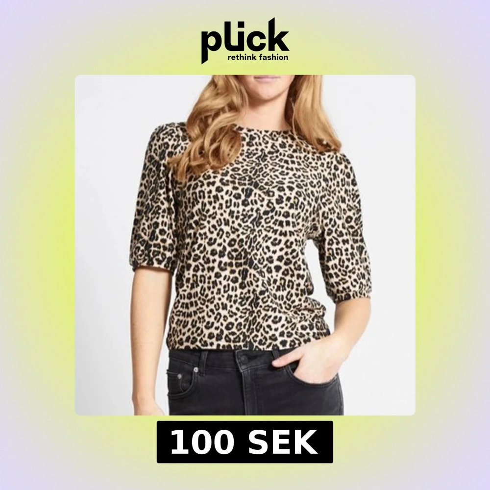 Snygg blus i leopardmönster från The Black Label Collection. Toppen har rund hals, puffiga halvlånga ärmar och är i mjukt, stretchigt material. Tröjan är använd några fåtal gånger.