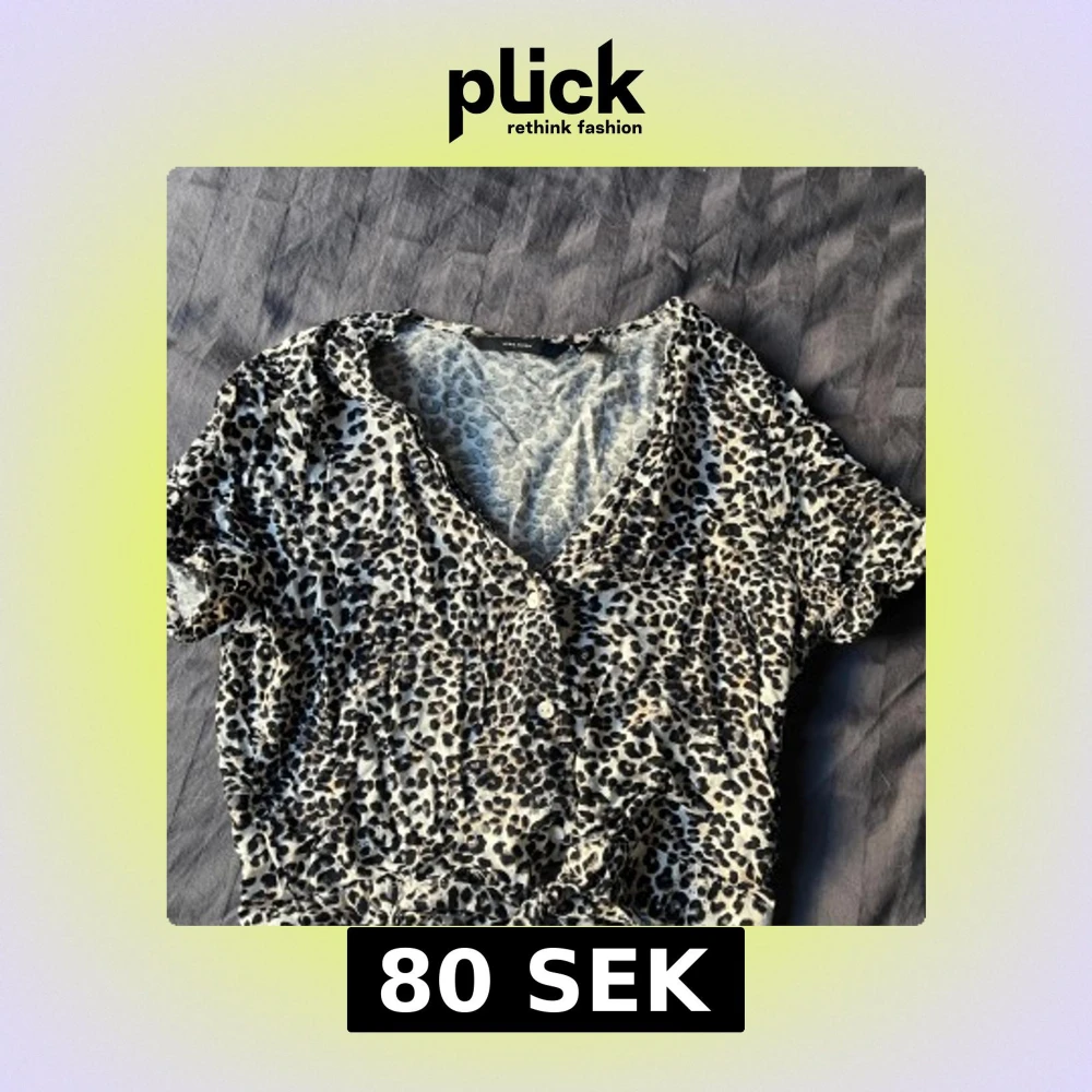Snygg leopardmönstrad blus från Vero Moda med knappar framtill och knytning i midjan. Blusen har korta ärmar och en v-ringad design. Sparsamt använd. Bra passform men för liten för mig.