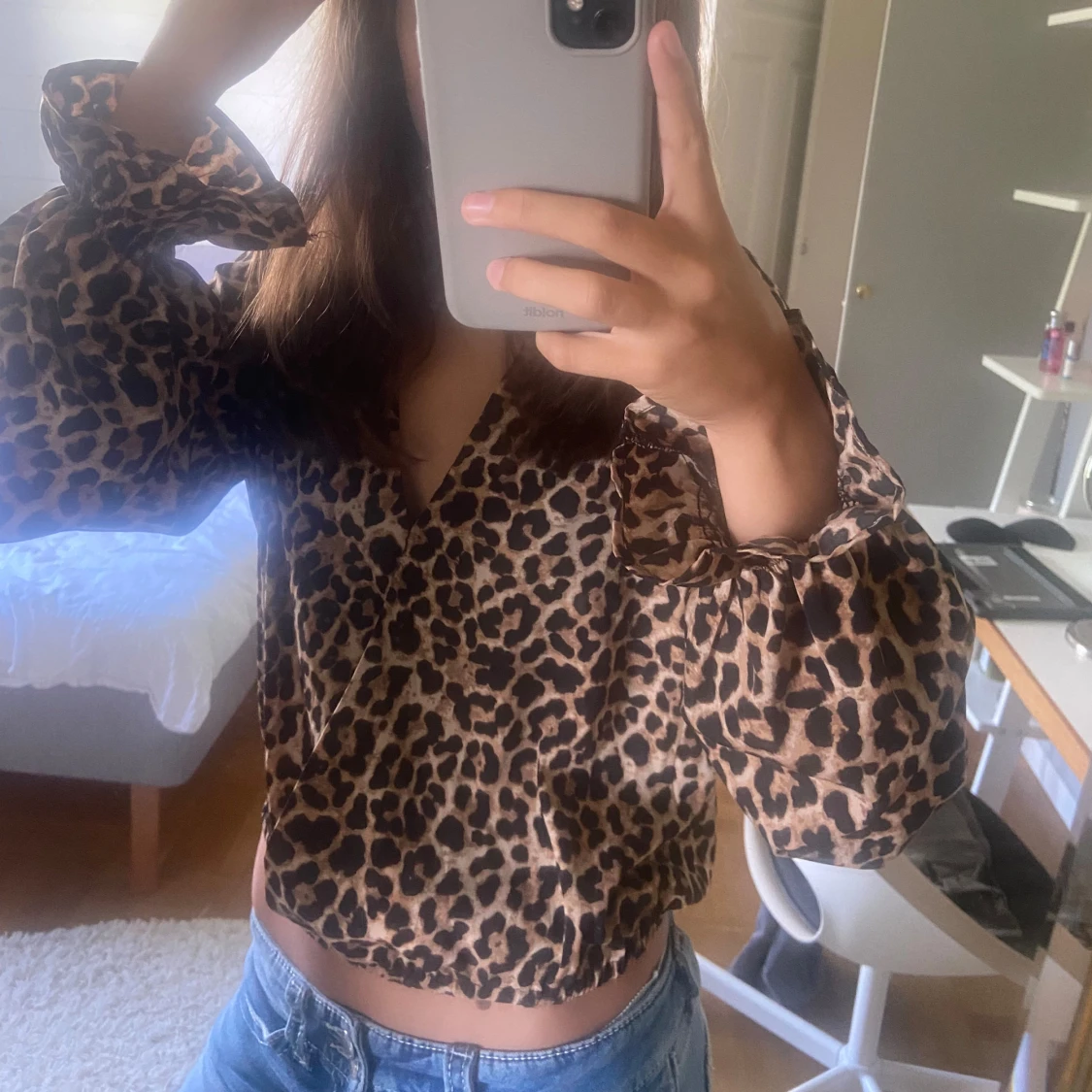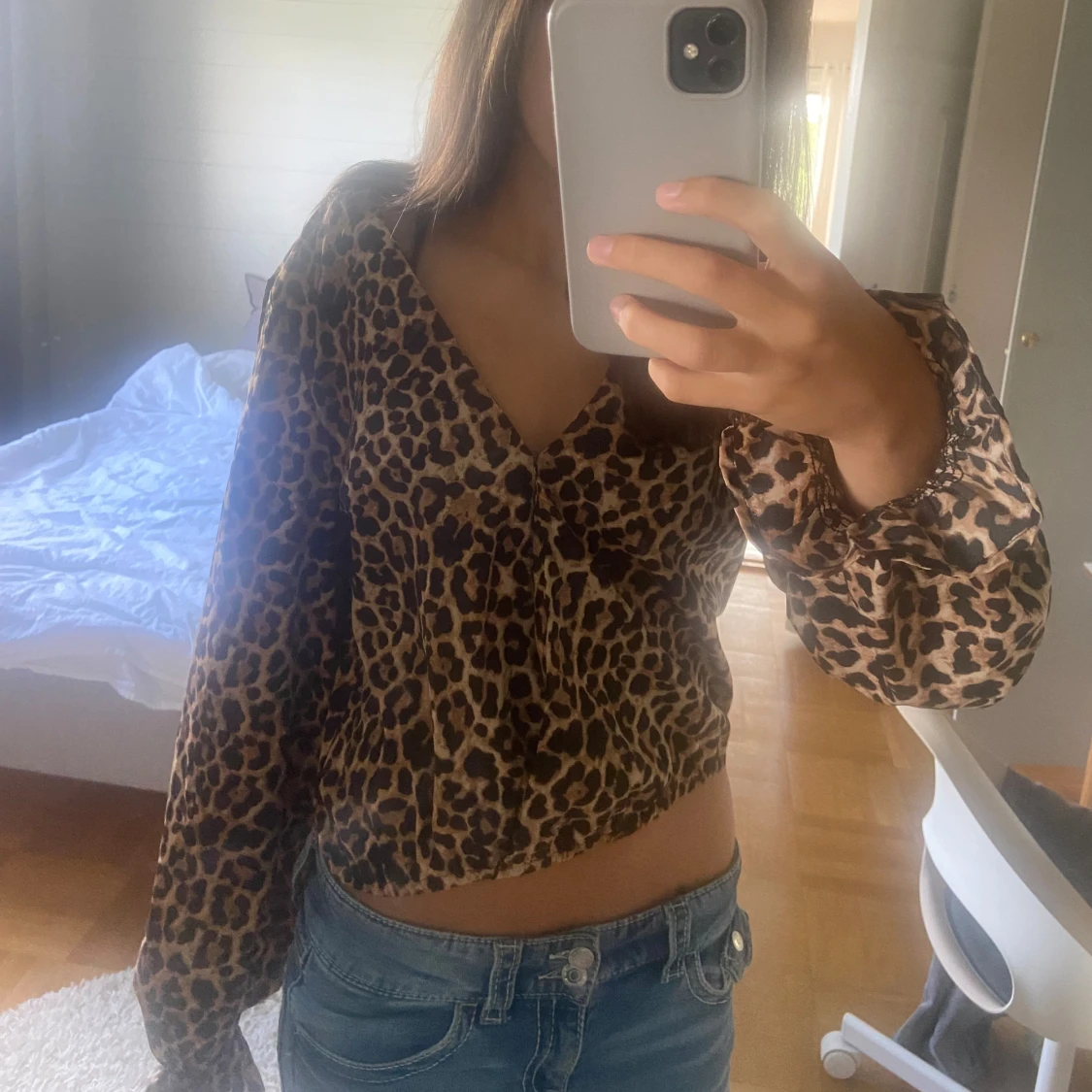 Säljer en superfin leopardmönstrad blus med långa ärmar. Den har en v-ringad design som ger en snygg look. Perfekt för en utekväll eller fest! Storlek xs men funkar perfekt till s också