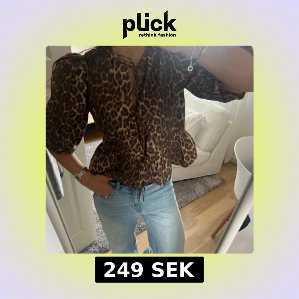 Säljer en snygg leopardmönstrad blus med puffiga ärmar och knytning framtill. Blusen har en markerad midja och är perfekt för dig som vill sticka ut. Passar till både jeans och kjol. Eftertraktad!