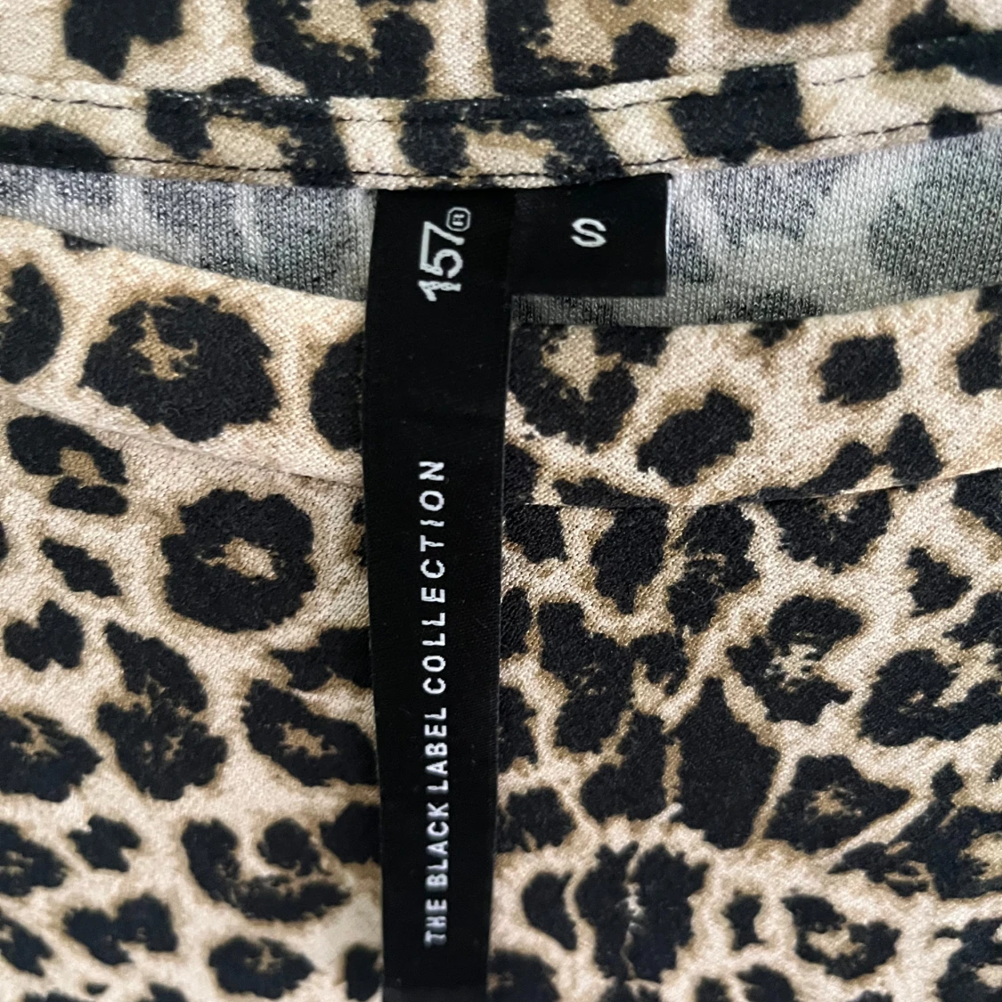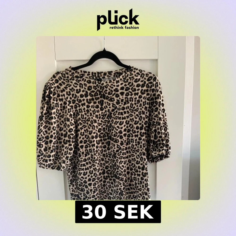 Säljer en snygg topp från 157 med leopardmönster i svart och beige. Toppen har rund halsringning och korta puffärmar. Använt en gång