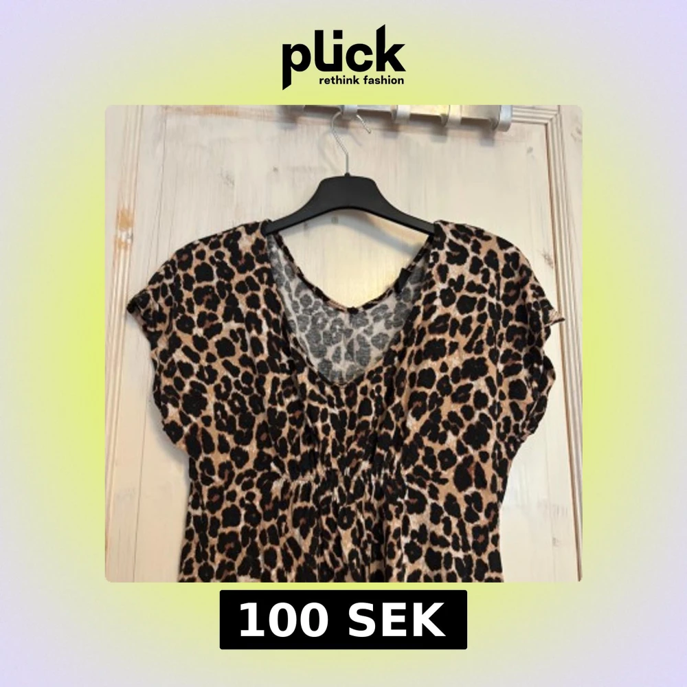 Snygg leopardmönstrad klänning från Gina Tricot i storlek XS men passar även S. har en v-ringad hals och korta ärmar. Perfekt för att fest/sommar. Insydd midja som gör vilket gör den figursydd i midjan.