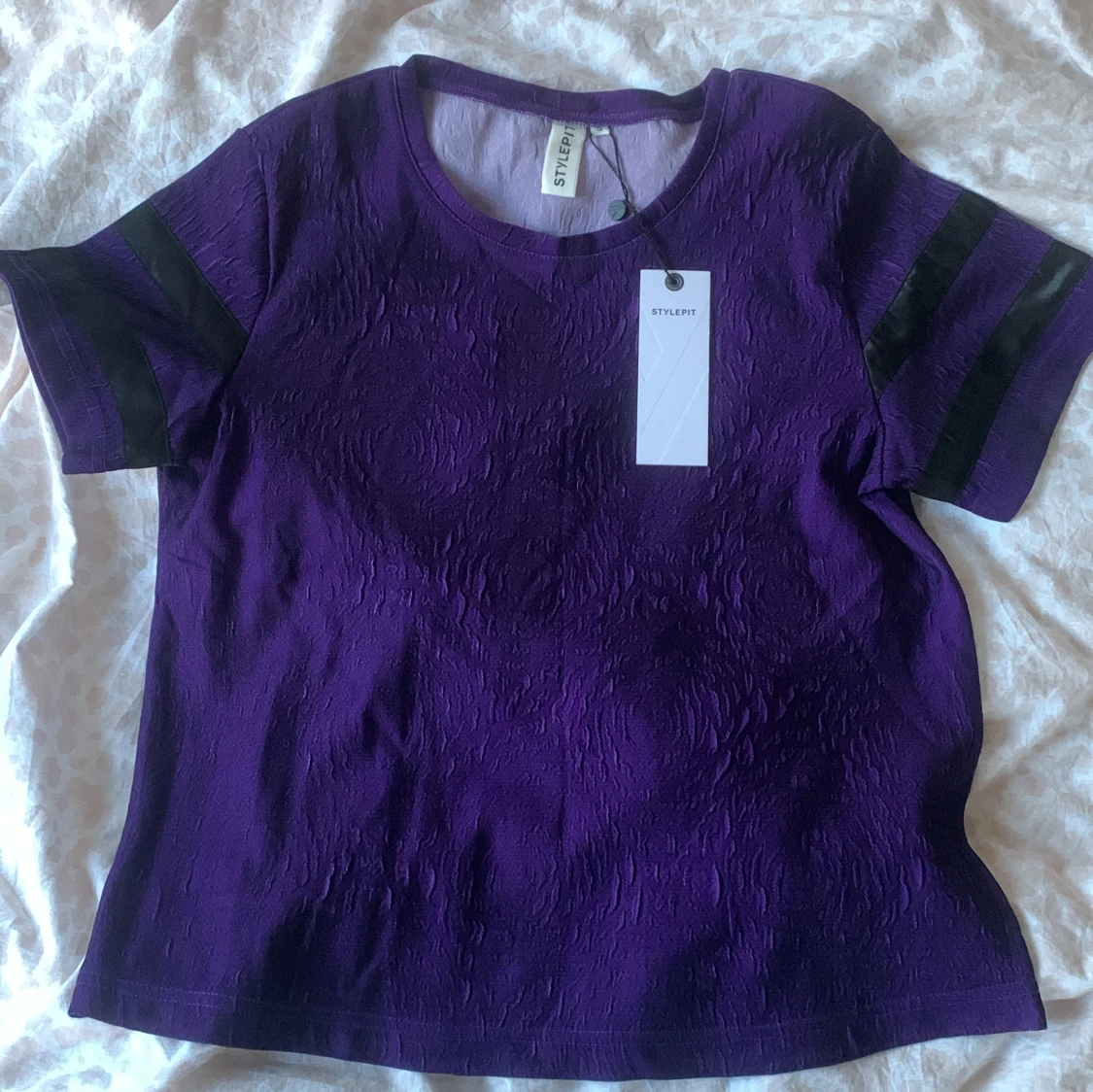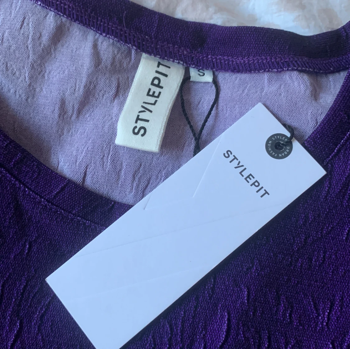 En fin lila blus i storlek S från Stylepit med ett diskret mönster av rosor på, helt oanvänd.